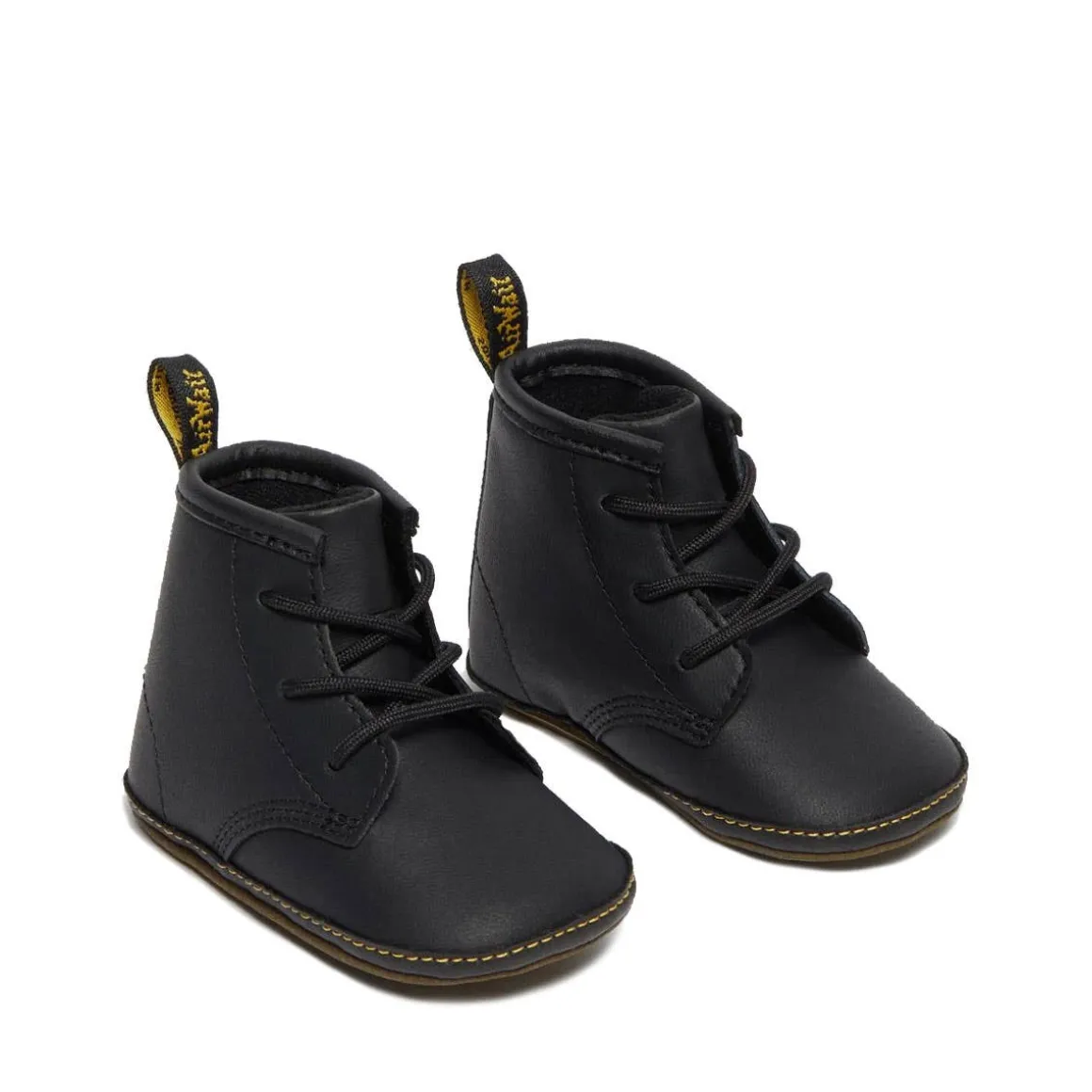 Their first pair. These small-yet-tough boots pack six decades of DM’s DNA into the smallest sizes. Crafted from flexible split leather to keep little feet comfortable, the 3-eye boots are enhanced with a slip-resistant outsole to help with those first steps.