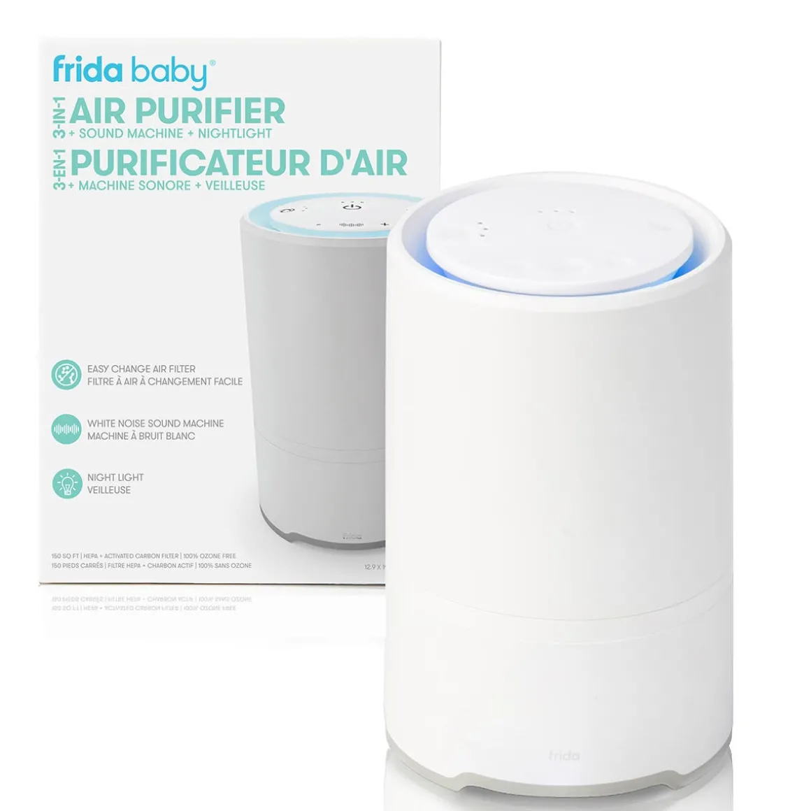 Need to clear the air? Filter out the bad stuff while lulling your little one to sleep with the 3-in-1 Air Purifier + Sound Machine + Nightlight. Remove dust mites, mold spores and air pollution thanks to the easy-change HEPA air filter. Choose from two sleepy sound options, three fan speeds and four nightlight colors to create the perfect ambiance for your kiddo to fall asleep. Simply plug in and breathe easy.