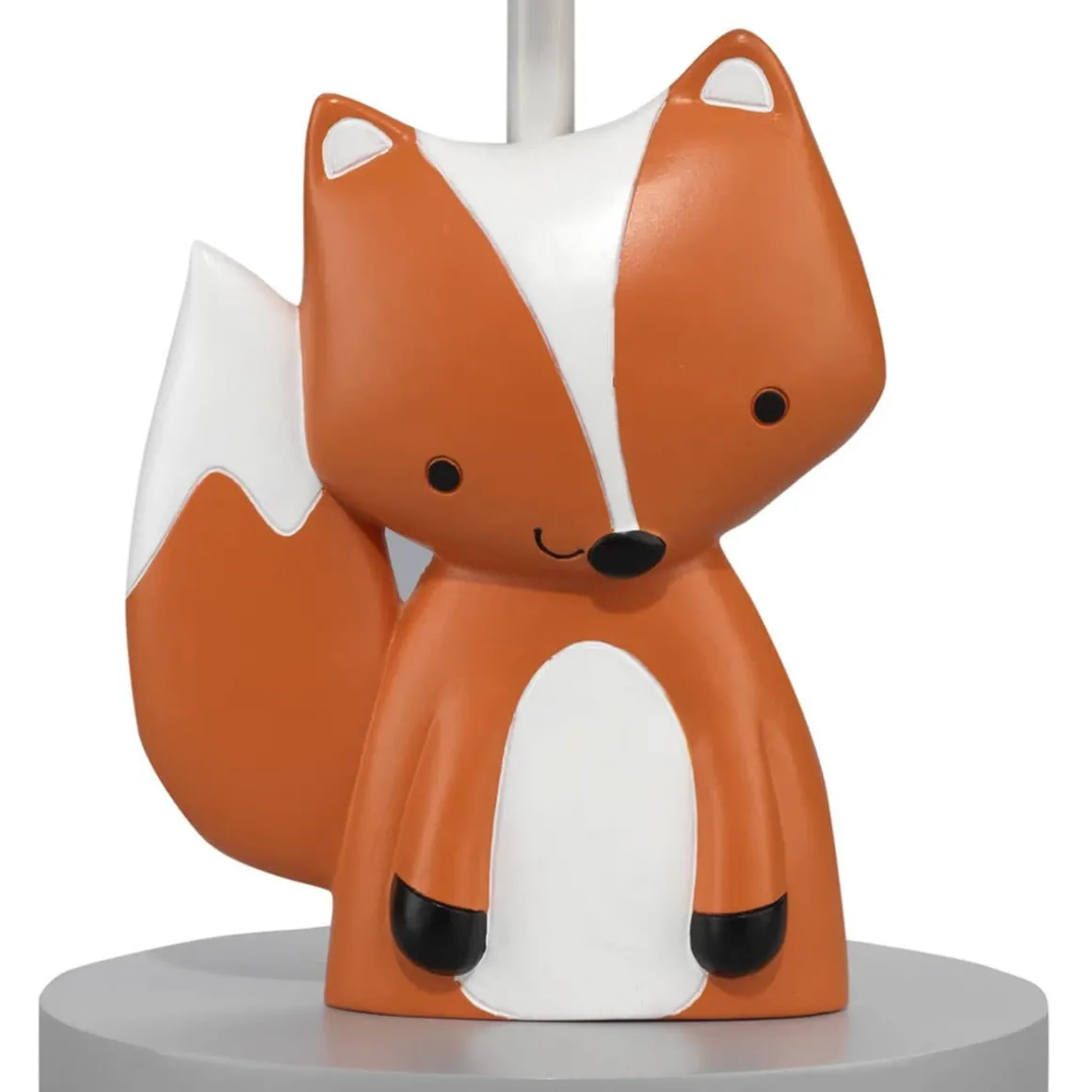 Customize your nursery with this playful resin lamp and shade. It features Acorn, the friendly fox sitting proudly on a gray base. The lamp shade is a gray chevron stripe with a darker gray trim. Comes complete with an energy efficient 13 CFL light bulb.