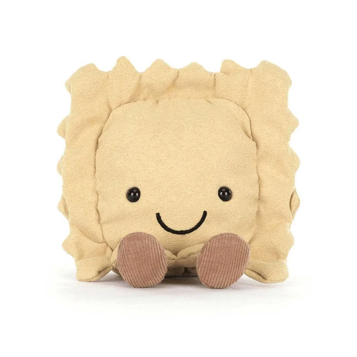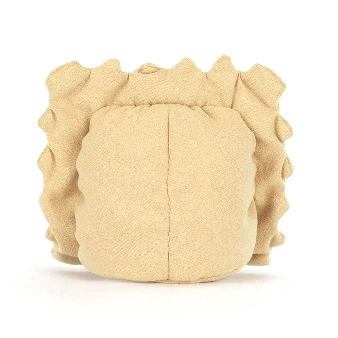 Bursting with giggles and soft in the middle, it’s Amuseable Ravioli! This cordy-boot cutie has warm golden fur, a fine stitchy frill and a welcoming smile. Pop this pal up on the kitchen shelf to watch your pasta pots!