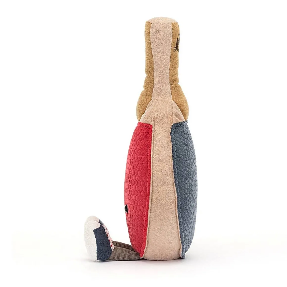 Amuseable Sports Table Tennis is gorgeously textured and ping-ponging with colour! From that caramel-nougat suedette handle to those textured panels in red and blue – and you can’t miss those cream-and-navy trainers, embroidered in vibrant red. To you!