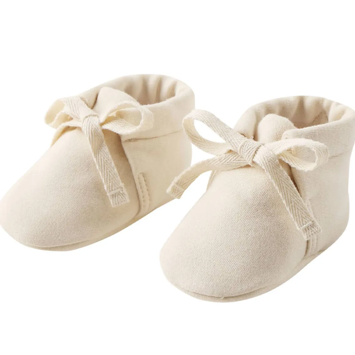 The softest baby booties to complete any outfit—designed with ties to keep them snug and secure on little feet.