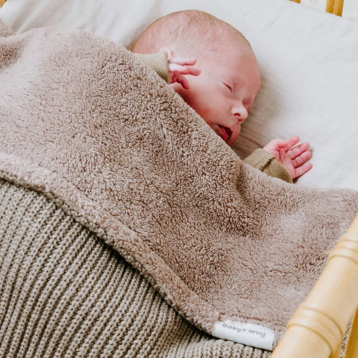 The Baby’s Only crib blanket teddy from the Hope collection have a tough but warm appearance, thanks to their robust knitted fabric and the gentle teddy bear lining. The carry-cot covers measure 70×95 cm so will fit any carry-cot, and are also handy when travelling. The Hope collection consists of delightful earth colours, which means that you can create a natural, stylish atmosphere in your baby’s bedroom.