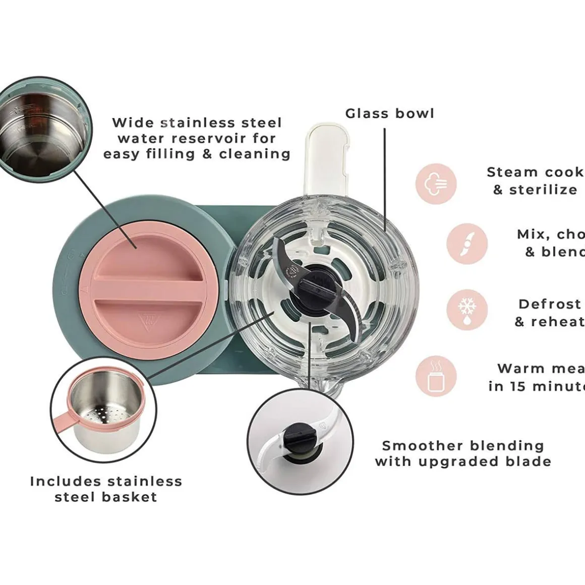 - A 4-in-1 steamer, blender, warmer and defroster in one sleek machine eliminates the need for pots, pans, blenders and microwaves