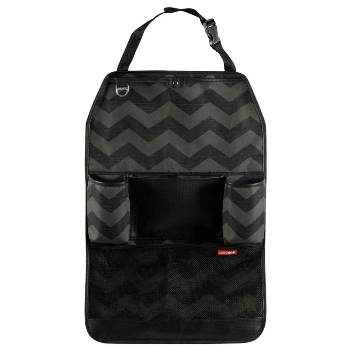 Perfectly sized to securely fit behind most front seats, this car organizer is as smart as it looks. The chic chevron print and fashionable faux leather coordinate with any car interior.