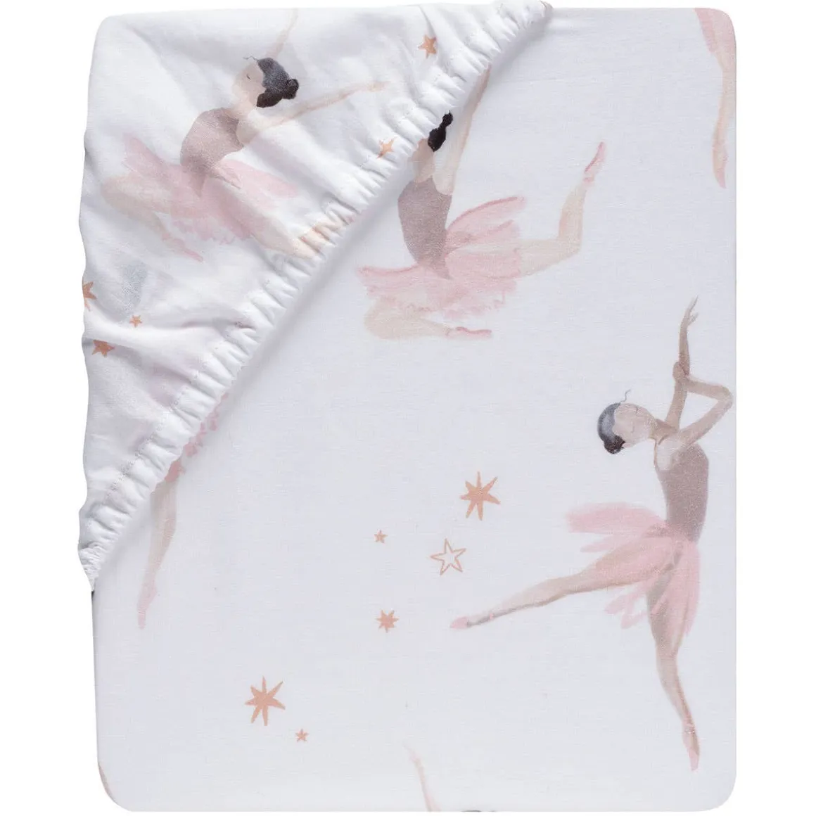 Your little one will drift off to dreamland surrounded by this lovely Ballerina nursery bedding collection. Ballerina baby is breathable 100% cotton fitted crib sheet features with pretty female ballet dance steps and stars. The fitted crib sheet has elastic all the way around ensuring a safe and secure fit on a standard sized crib mattress measuring 28” X 52”. It is a perfect blend of style and comfort. Machine washable for easy care.