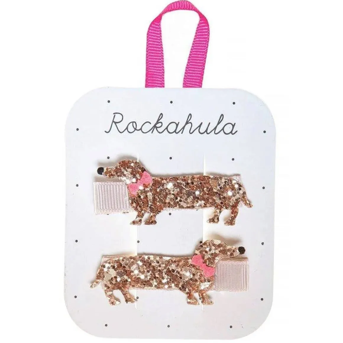 Morris the glittery sausage dog is so dashing in his pink bow tie, he makes the smartest addition to any hair style. He is secured to a salon style clip covered in pale grosgrain ribbon.