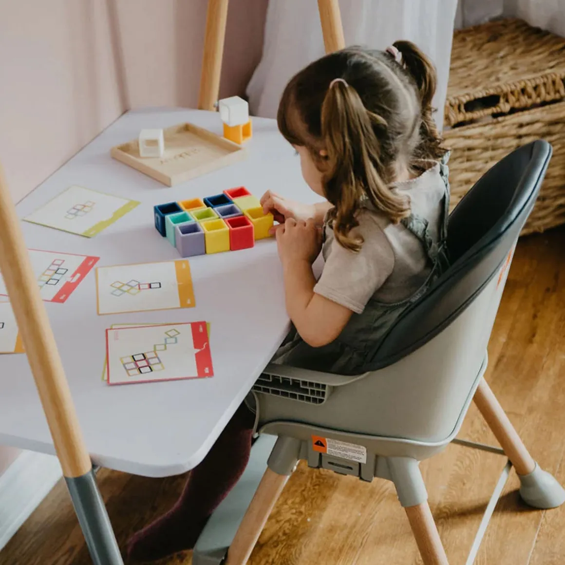 These colorful Blöx will have a special place in your little one’s playroom (and heart) for years to come. This creative puzzle is the perfect toy to help your little one develop fine motor skills, problem solving, concentration and cognitive skills. Beyond resolving challenge cards, you can use Blöx in multiple ways. Independently or with the help of a parent, your toddler will have fun stacking, organizing and creating shapes of all kinds. These Blöx are also a perfect cool down game as well as a practical tool for learning math and logic. Their limits are matched only by the overflowing imagination of your little one!