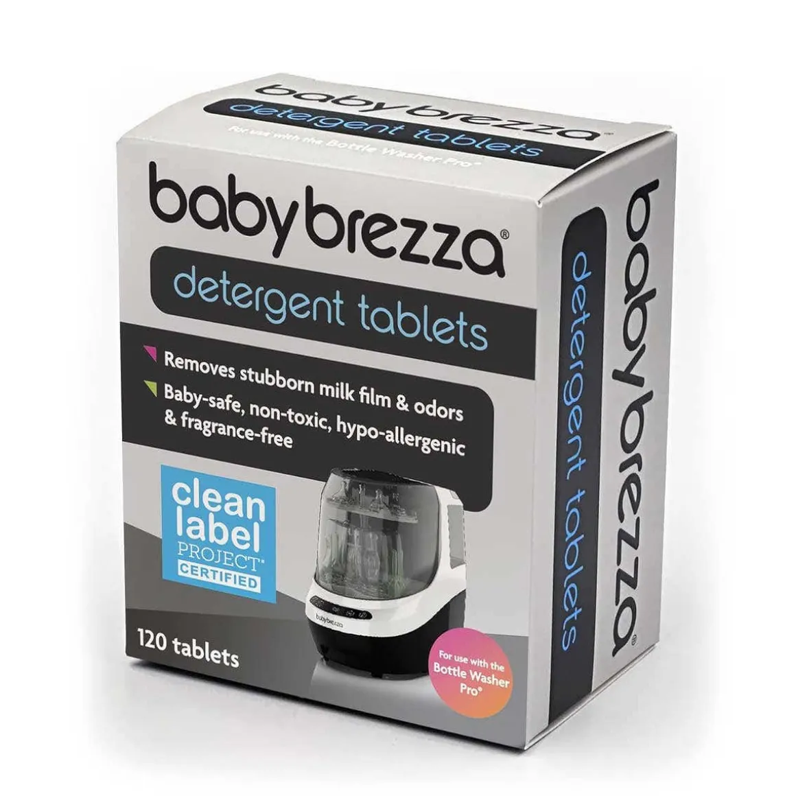 Exclusively made for the Baby Brezza Bottle Washer Pro, the detergent tablets remove stubborn milk residue and odour. The safe and powerful cleaning formulas are non-toxic, hypo-allergenic and fragrance-free. Detergent Tablets for Bottle Washer Pro – safe and powerful cleaning for your baby’s bottles, pump parts & accessories.