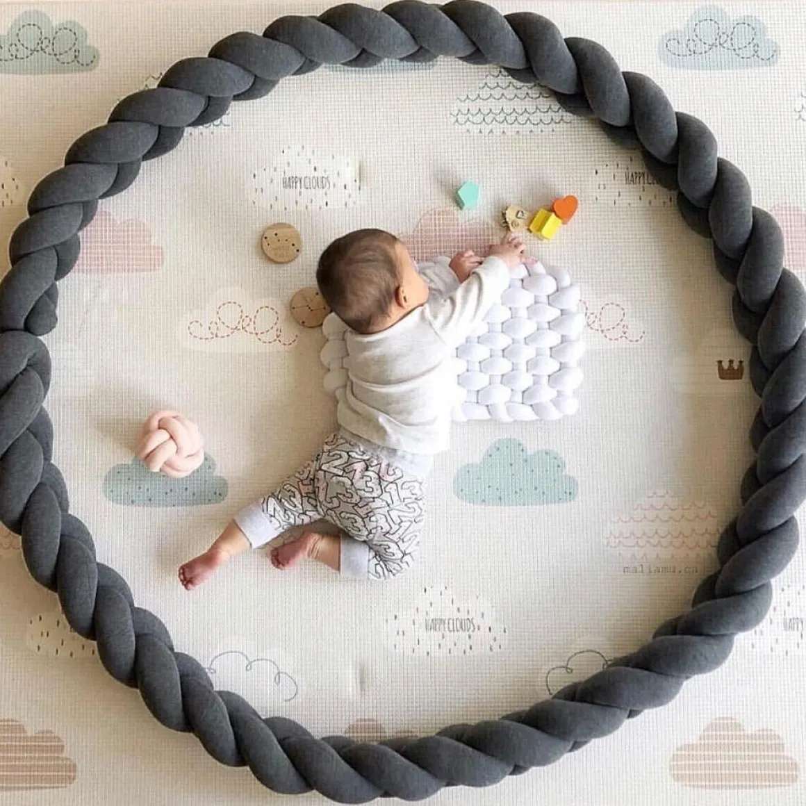 - Co-Sleeping & Floor Beds: Toddlers and young children have a habit of rolling and kicking in their sleep. Whether they are bumping into the wall, or rolling right out of bed! Our braids are a great solution to cushioning their kicks and stopping their rolls. Their design allows for versatility, to adapt to any shape or size area depending on your needs.