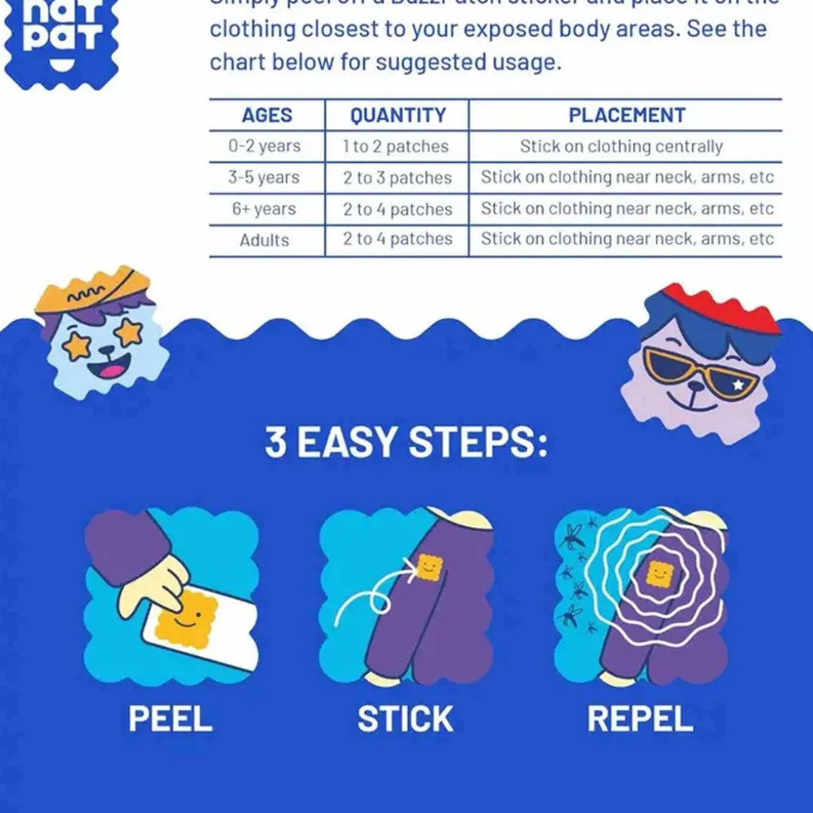 - Buzz patch scent creates a virtual shield to protect the kids from mosquitos