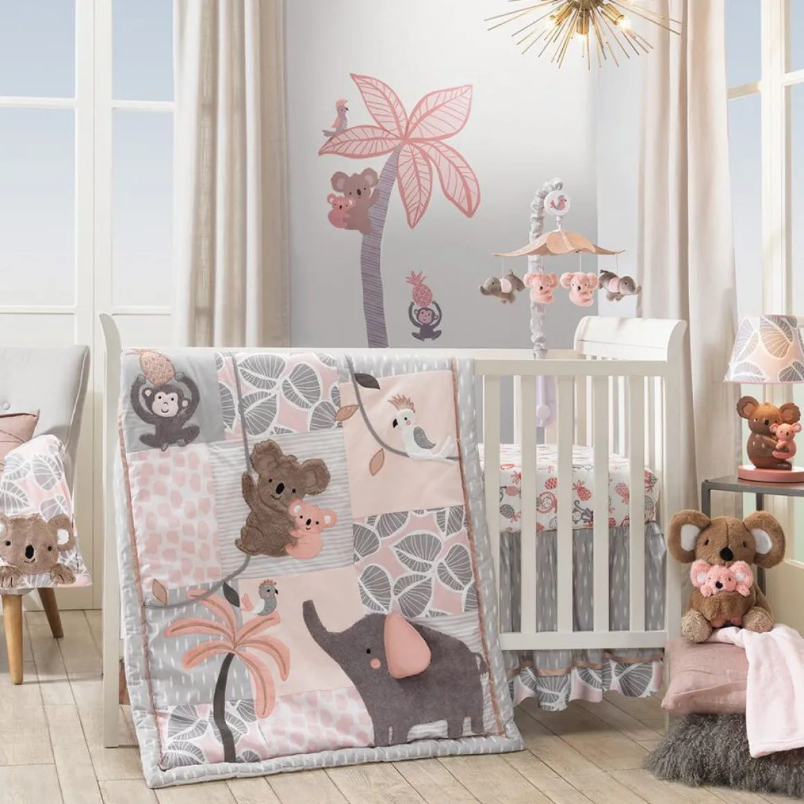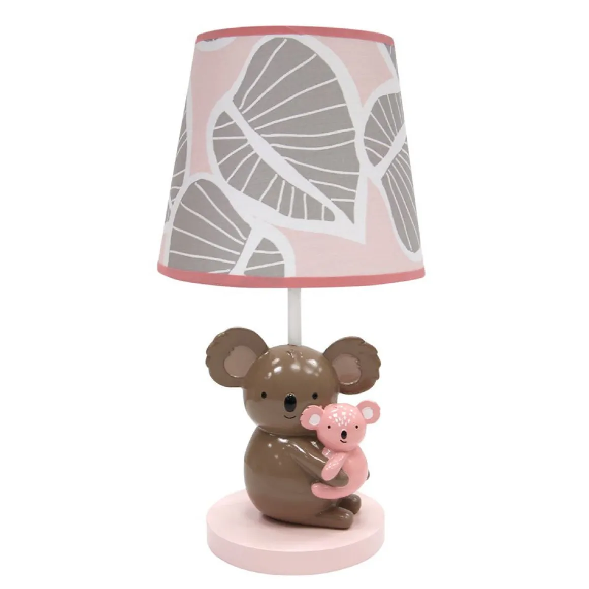 Fuzzy and Wuzzy are the cutest mommy and baby koalas. The coordinating lamp shade is a lovely leaf print.