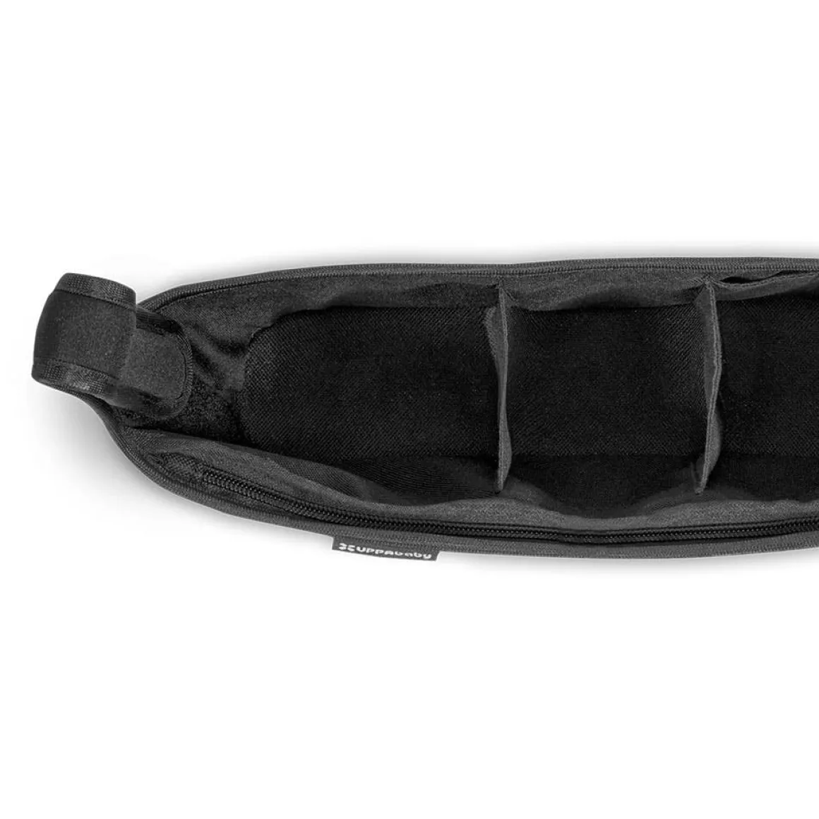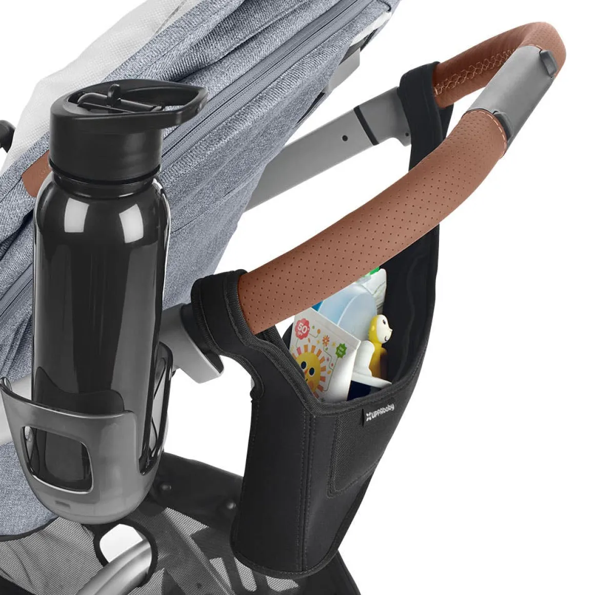 This deluxe parent console has multiple, easy-access compartments for various beverages or snacks, while a large zipper pocket stores personal items.