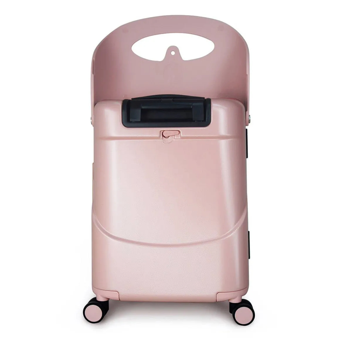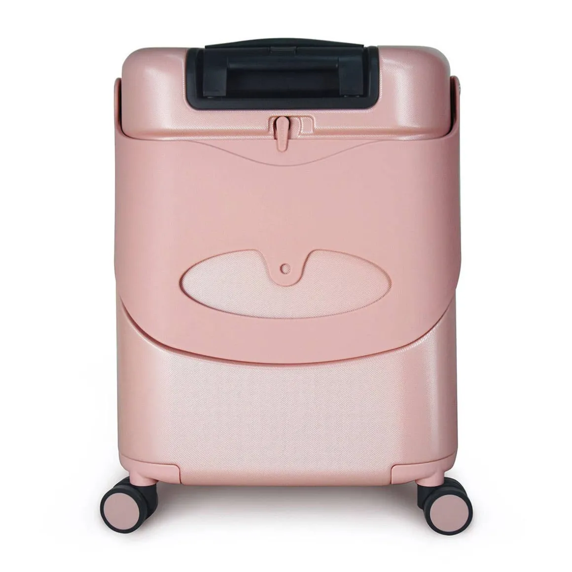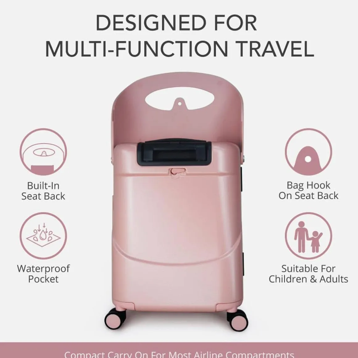 Designed for multi-function travel, the MiaMily luggage bag universally configures into a ride on suitcase for children or a portable seat for adults, allowing your child to quickly and conveniently travel with you atop the travel suitcase or providing a resting place for adults when standing for long periods of time. When traveling without a child, the seat on this spinner suitcase can be used to safely store a diaper bag, travel bag or a briefcase.