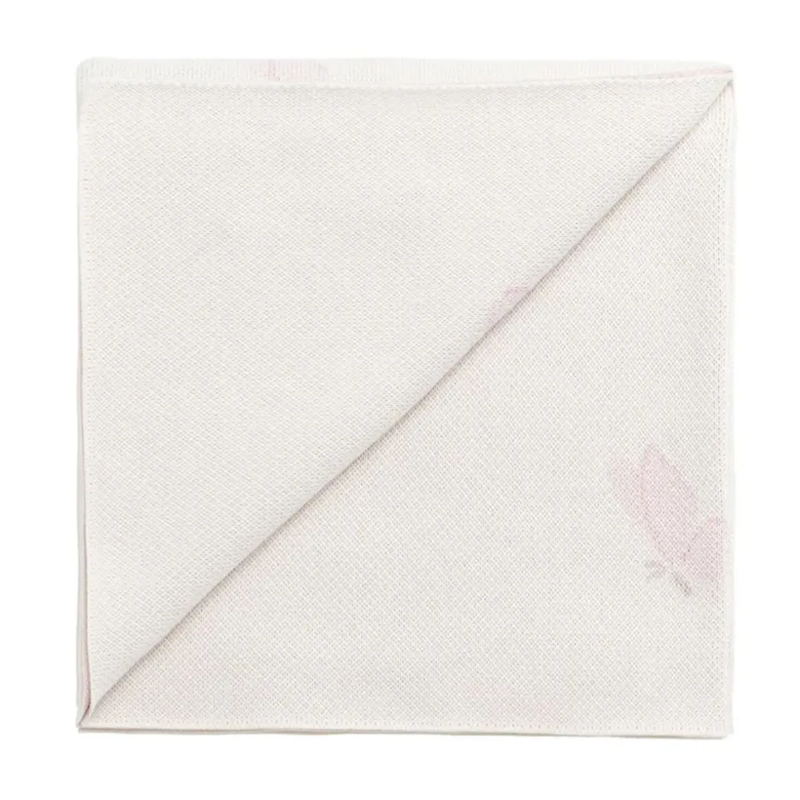 - Cream base with soft pink butterfly jacquard knit