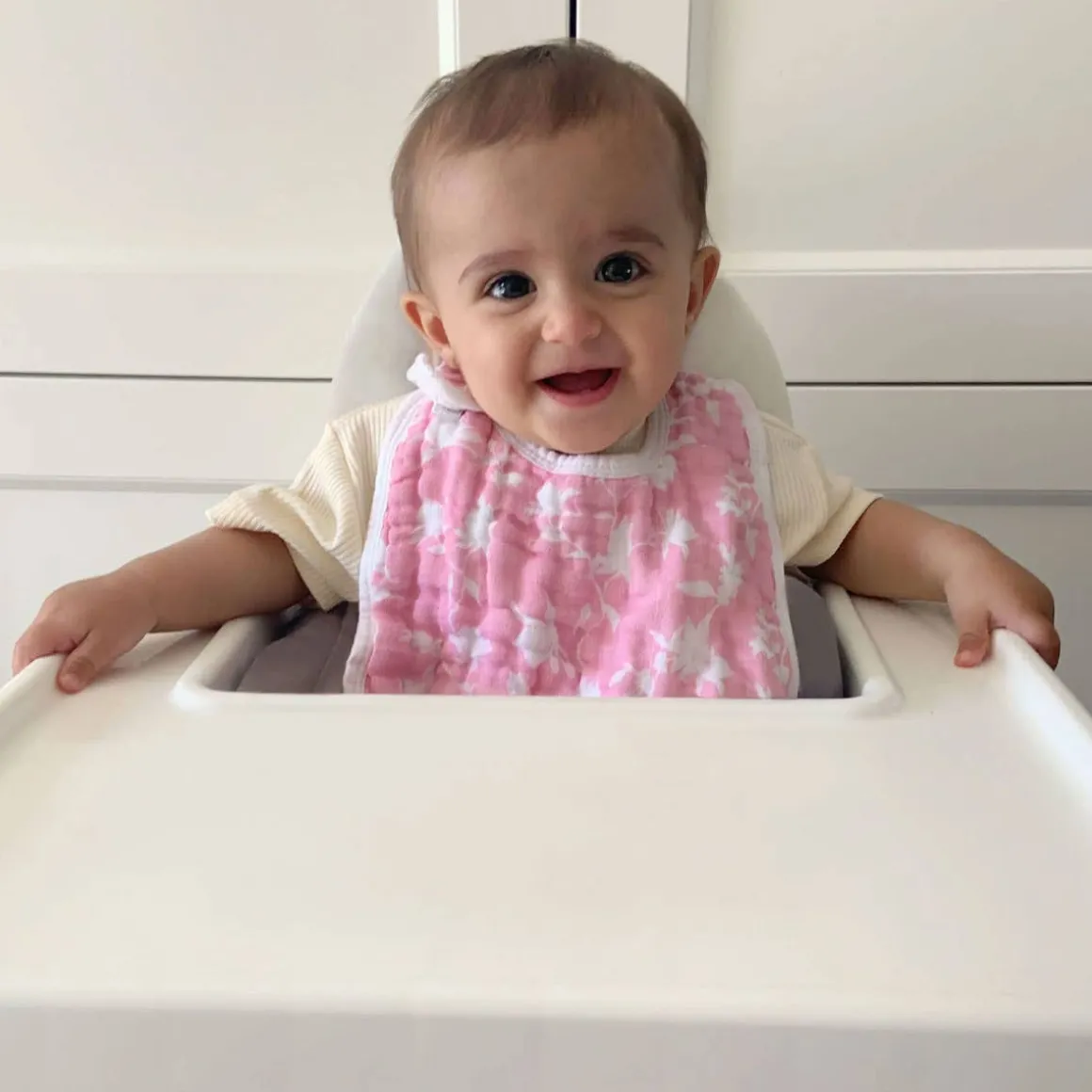 Aden + Anais 100% cotton muslin classic snap bib features three snaps conveniently located in the front for an adjustable fit and easy fastening. And not to worry, the messier it gets, the better. Pre-washed muslin so it’s super soft from the start and stays that way wash after wash. Finally, a bib that grows with your baby and lasts through washes!