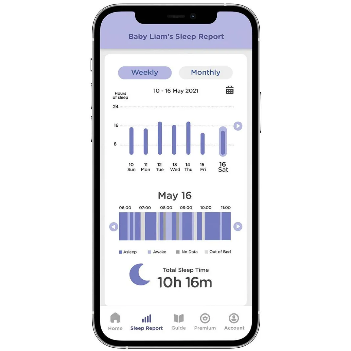 The HubbleClub app gives you access to your baby’s daily Sleep score, alerts you when it detects sleep disturbance and when baby is out of bed, and provides tools to help you sleep train your baby.