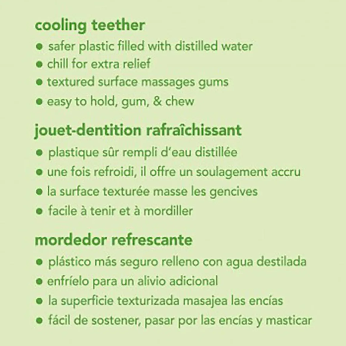 Baby will love the soothing Cooling Teether because it provides extra relief for swollen and sensitive gums. It is perfectly sized to promote healthy oral development and soothe baby’s guys during different stages of teething. The shape of the Cooling Teether is easy for baby to hold, gum, and chew, and a textured surface massages sensitive areas. Choose from fun fruit and veggie shapes, and bright colors, too! Parents love that is made without BPA and PVC for baby’s health and well-being!
