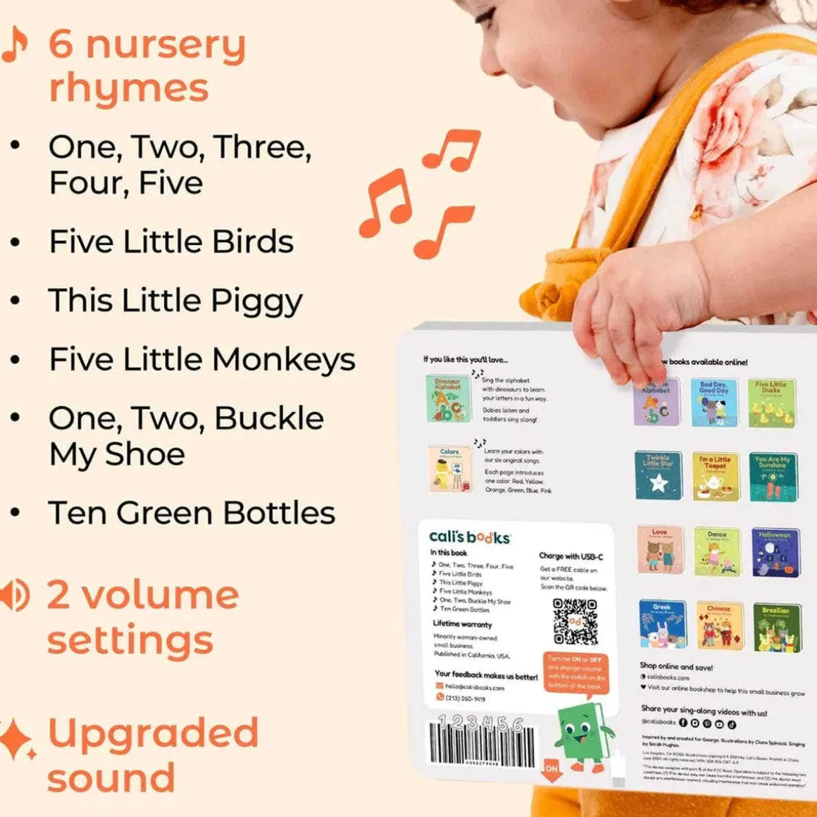 Introduce counting to your child with the Count With Nursery Rhymes sound book! Fun nursery rhymes such as “One, Two, Buckle My Shoe” and “Five Little Birds” engage kids in a rhythmical learning format that guarantees smiles and laughter. Popular songs included in this book are Five Little Monkeys, One, Two, Three, Four, Five, and Ten Green Bottles. Let your little one explore the exciting world of numbers in a fun and educational way!