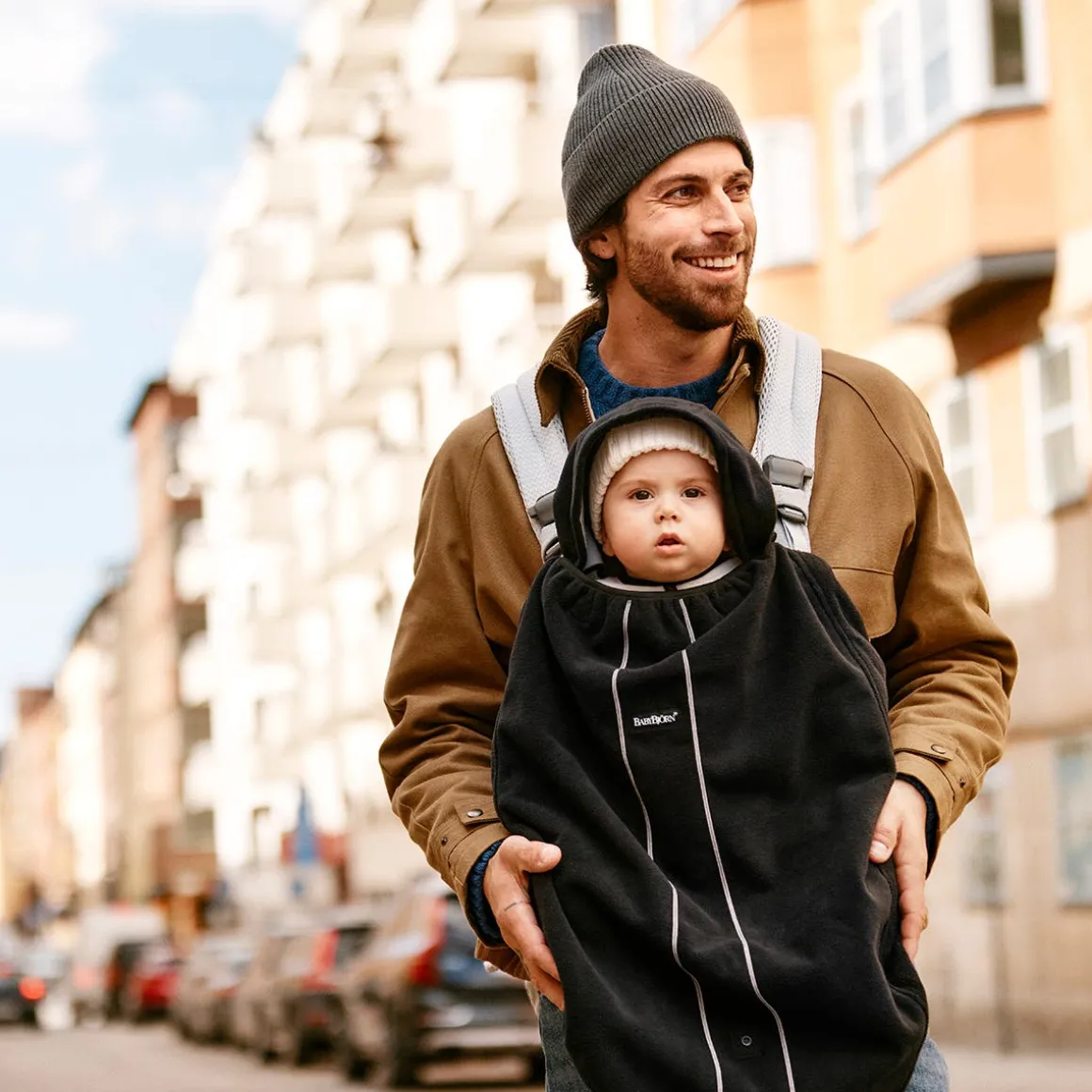 The cover is perfect when you want to use your baby carrier in cold, wet and windy weather. It has a soft fleece lining that retains heat and keeps your baby dry. You can use the cover when you’re babywearing in either the facing-in or facing-out position. Fits all baby carriers from BABYBJÖRN.