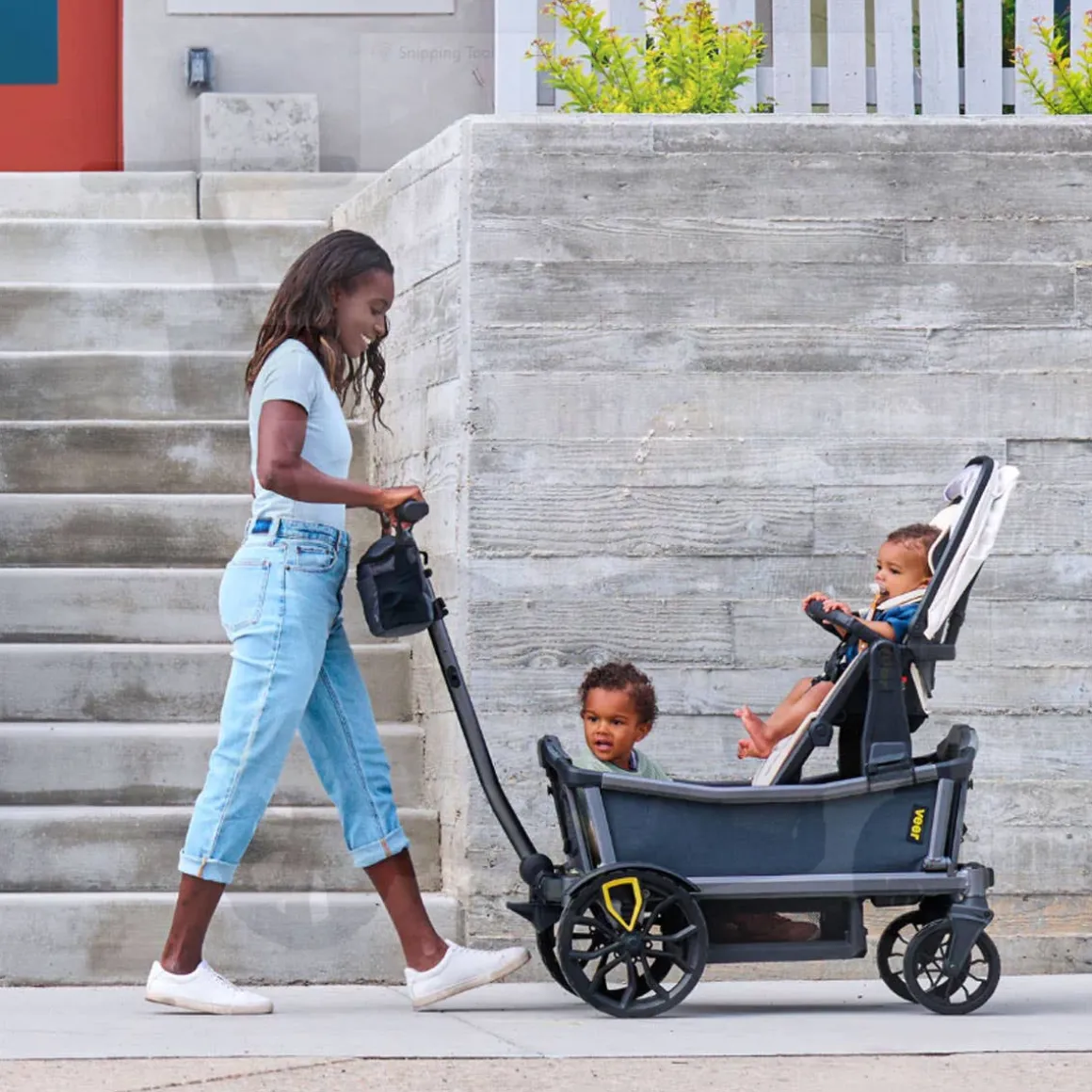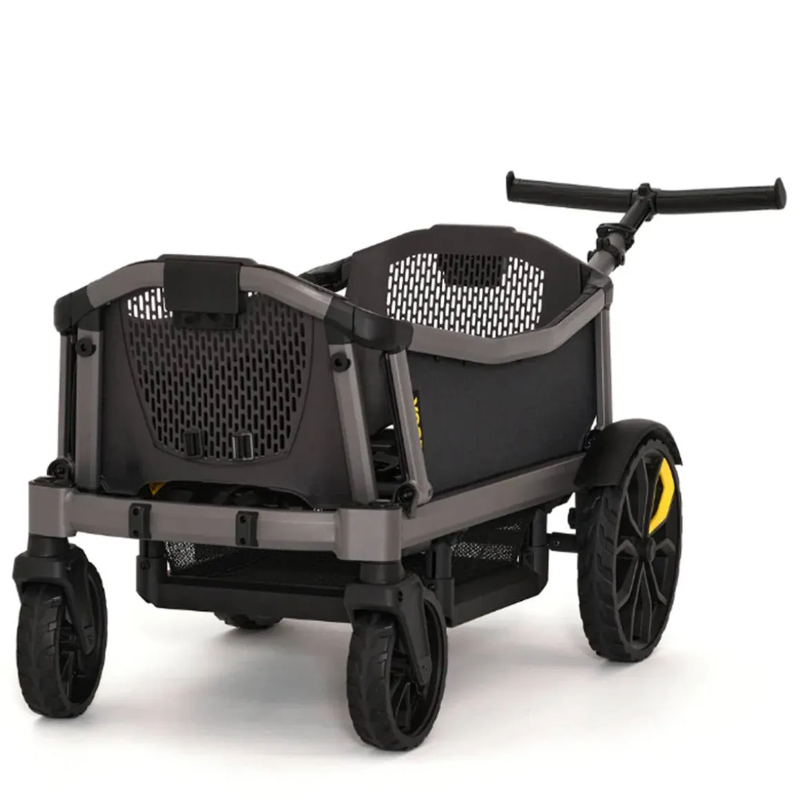 Cruiser City gives your family the fun and all-terrain versatility of a Cruiser but offers the push steering and ample kickspace of a traditional stroller. Cruiser City is perfect for families that love to push on sidewalks, paths and through local attractions with seating for 2. Cruiser City features swivel wheels furthest from the handle, which enable it to be steered like a traditional stroller when pushing on smooth terrain. But don’t worry, the handlebar can also drop into wagon mode for pulling over uneven terrain.