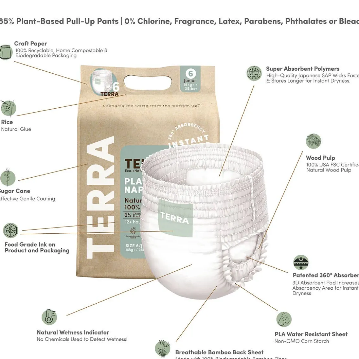 - Plant-Based Wetness Indicator shows how much the diaper has absorbed