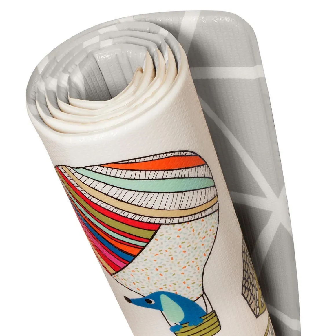 Designed to double the choices for stylish, baby-safe floor covering, our reversible playmat flips from a colorful kid-friendly pattern to a modern décor print for two looks in one. Completely PVC-free, the easy-care foam mat provides a jumbo-size cushioned play space that works equally well in the livingroom or playroom. Simply roll it up for convenient transport and storage.