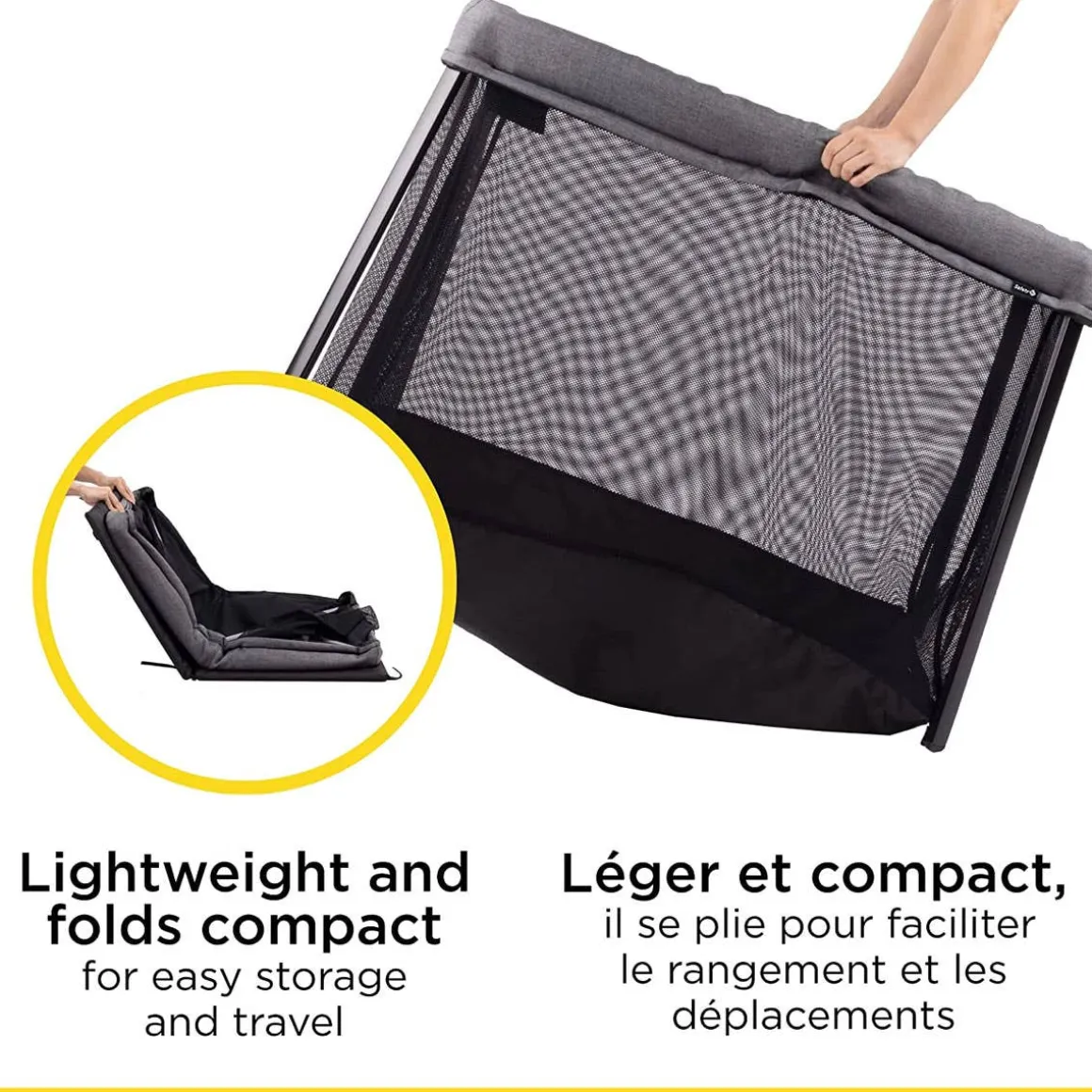 Enjoy the freedom of spontaneous family travel with the Safety 1st Dream and Go Travel playard with bassinet feature. The Dream and Go is light weight and folds up small for easy transport. The bassinet feature is approved for overnight sleep and uses a zip-on attachment for added stability. The mesh sides keep the Dream and Go properly ventilated, and the soft padded mattress keeps baby comfortable. The Dream and go packs away with an included travel bag, making it great for at home storage and takes up less space in your trunk for those impromptu trips to the grandparents or the cottage. The Dream and Go travel playard is the perfect partner for spur of the moment young family adventures.