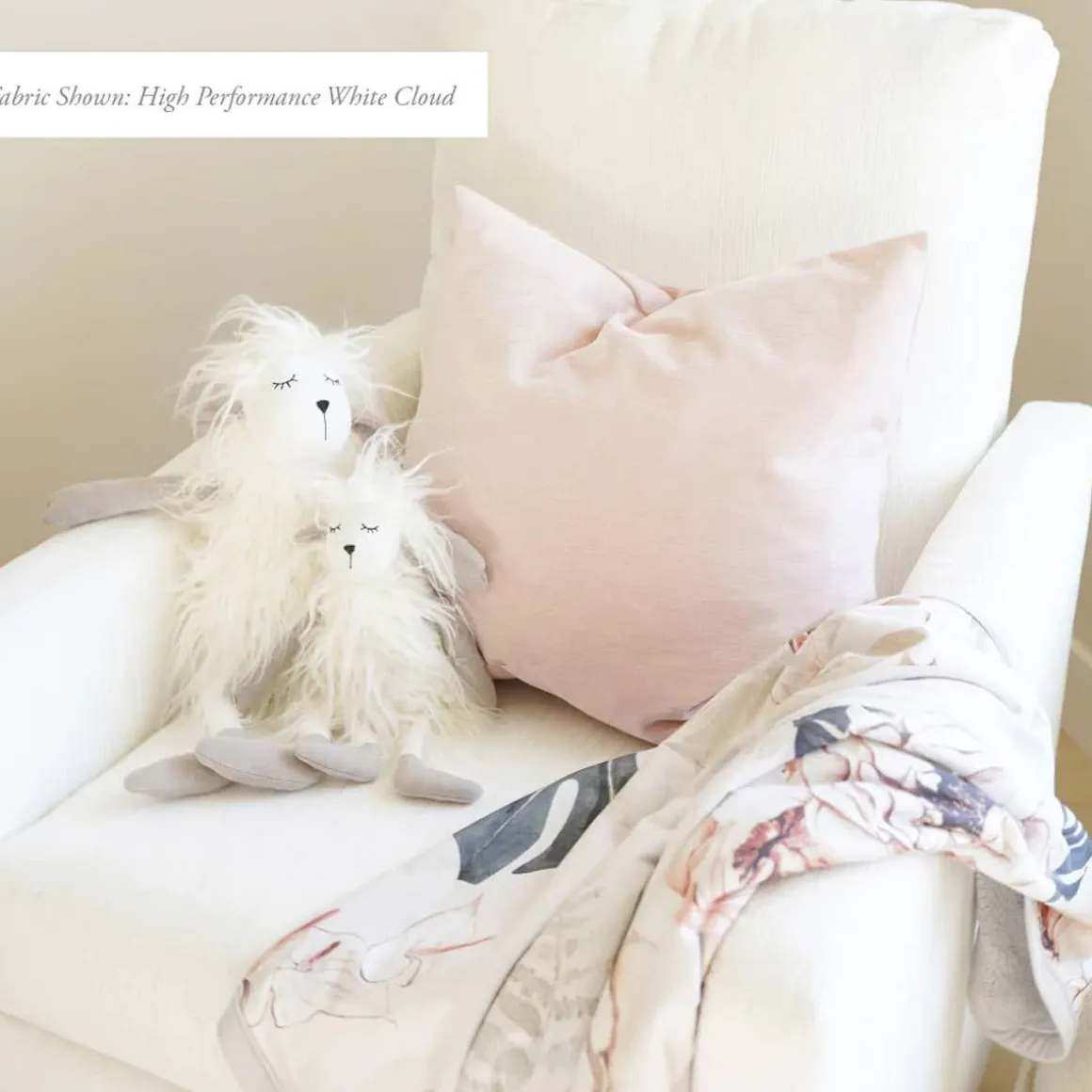 - High performance Cloud White is buttery soft to the touch but has a high performance finish so it’s easier to clean. It’s also water repellent so you have time to soak up a spill before it soaks into the fibers.