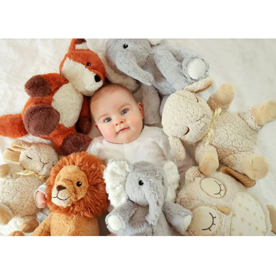 After choosing the 23 or 45 minute option, Elliot Elephant On The Go™ shuts off to save battery power. And when the plush needs a bath, pop out the sound box and simply toss in the wash. Elliot Elephant On The Go™’s compact size makes it ideal for any destination.