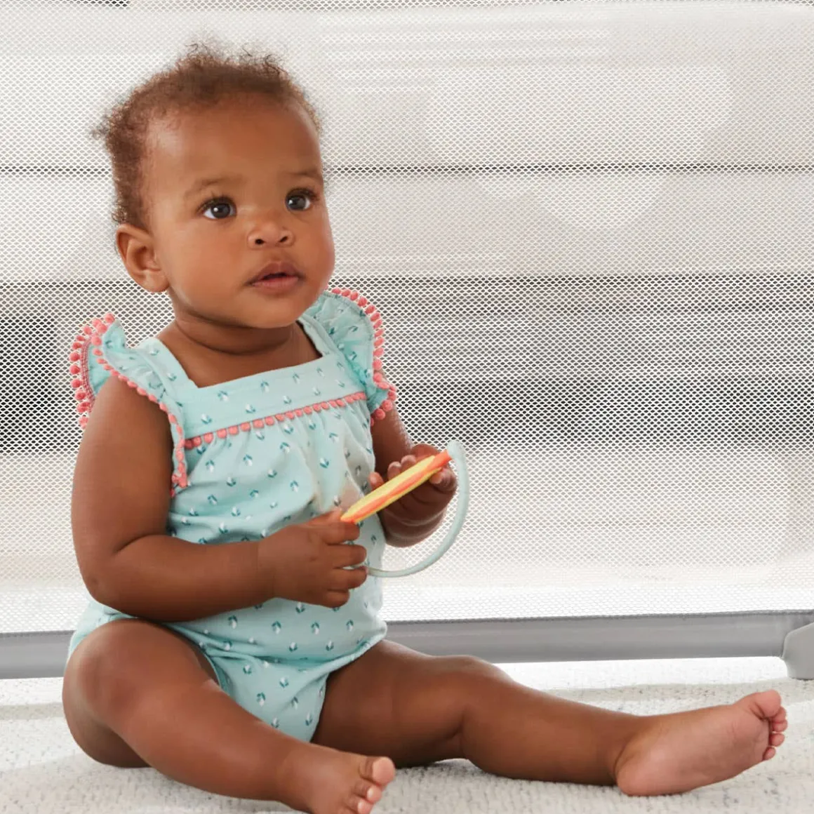 Whether learning to crawl or taking first steps, the minute little ones are on the move, parents need a baby-proof area to keep them out of harm’s way—and give parents peace of mind. Skip Hop’s Expandable Enclosure features six cloud-print mesh panels that allow visibility between parent and child while keeping baby contained.