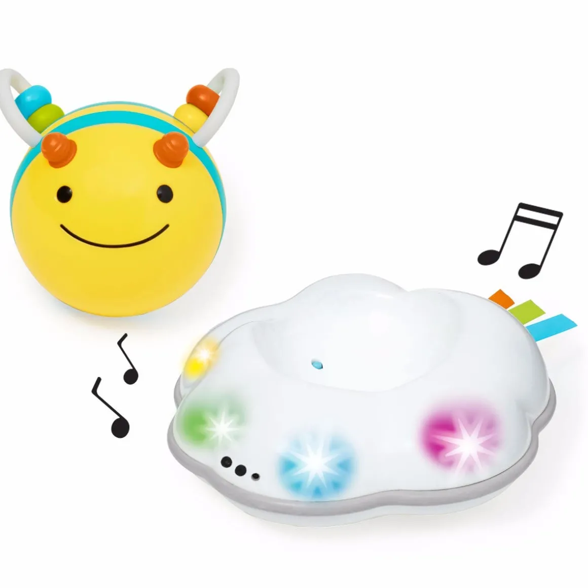 - Removable Bee features moveable beads and rubberized details for teething