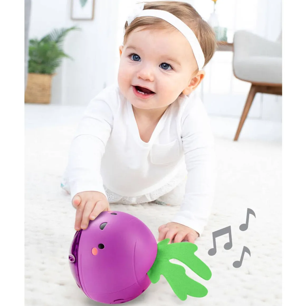This adorable beet crawl ball inspires musical and creativity early on! Get baby moving and grooving to the “beet” with adorable crawl ball. Just switch it on and keep the ball rolling for fun motion-activated beatbox riffs and rattle sounds to encourage crawling adventures.