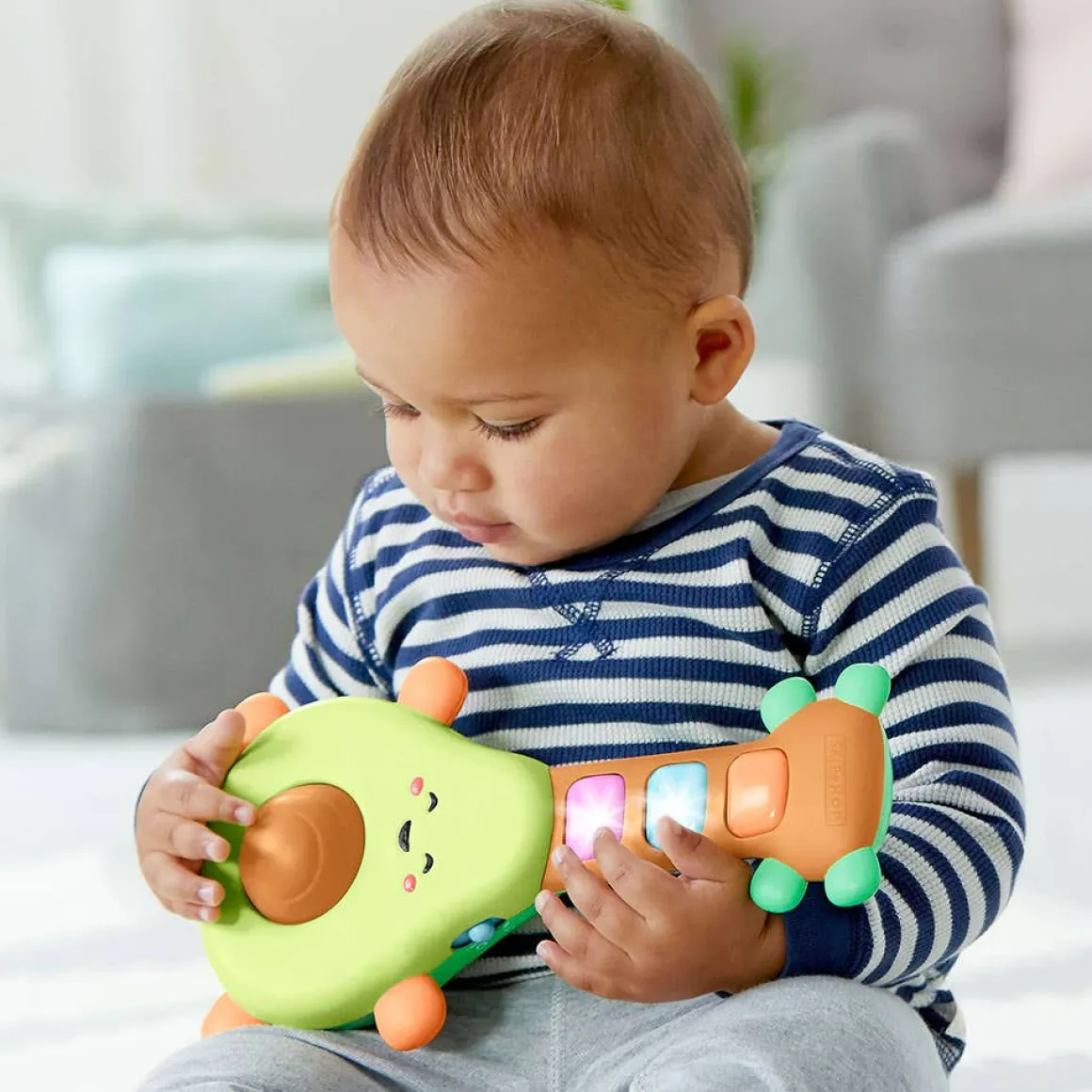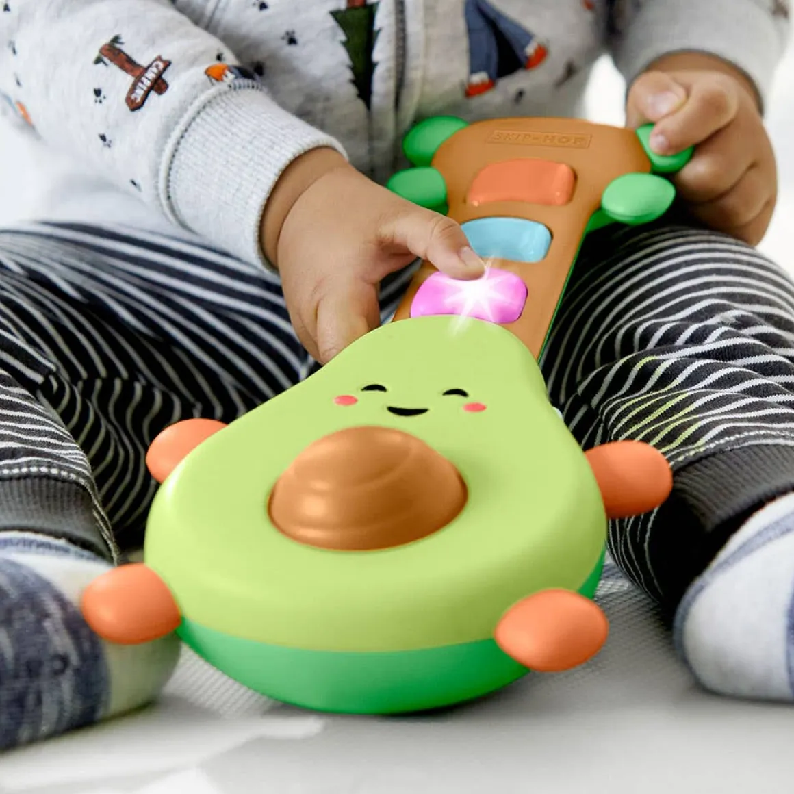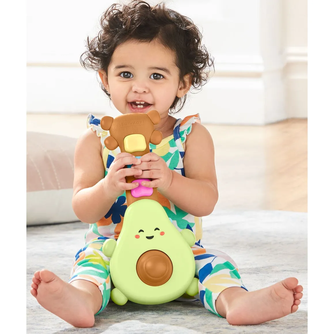 A little bit country and totally guac & roll! This adorable Skip Hop Farmstand Rock-A-Mole Guitar is an avocado guitar inspires mini musicians with strumming riffs, fun tunes and more! Easy for little hands to hold—just spin the avocado’s “pit” or press the light-up buttons and guac out!