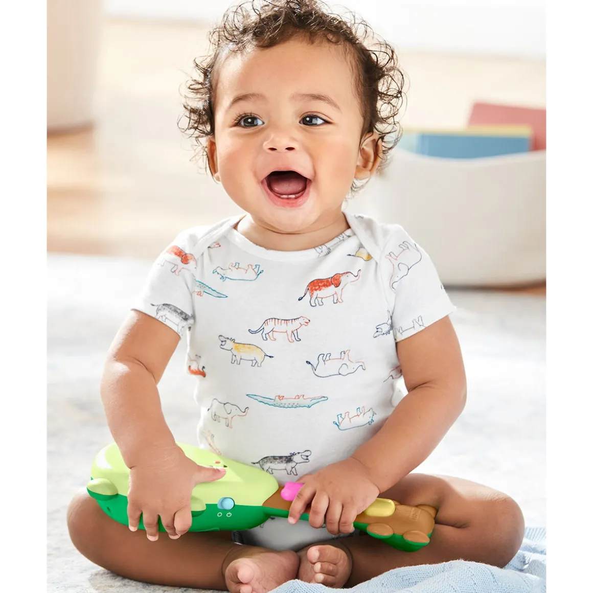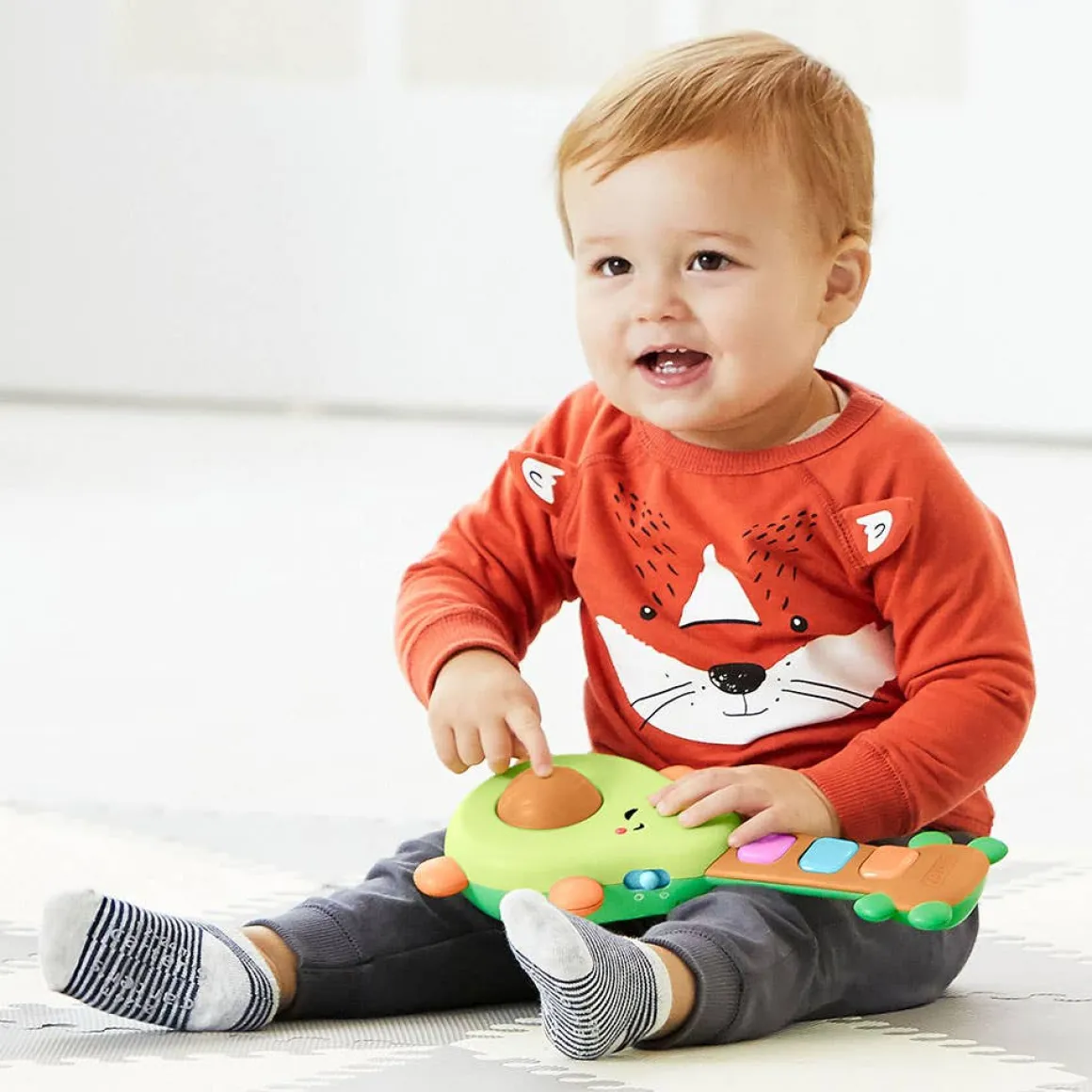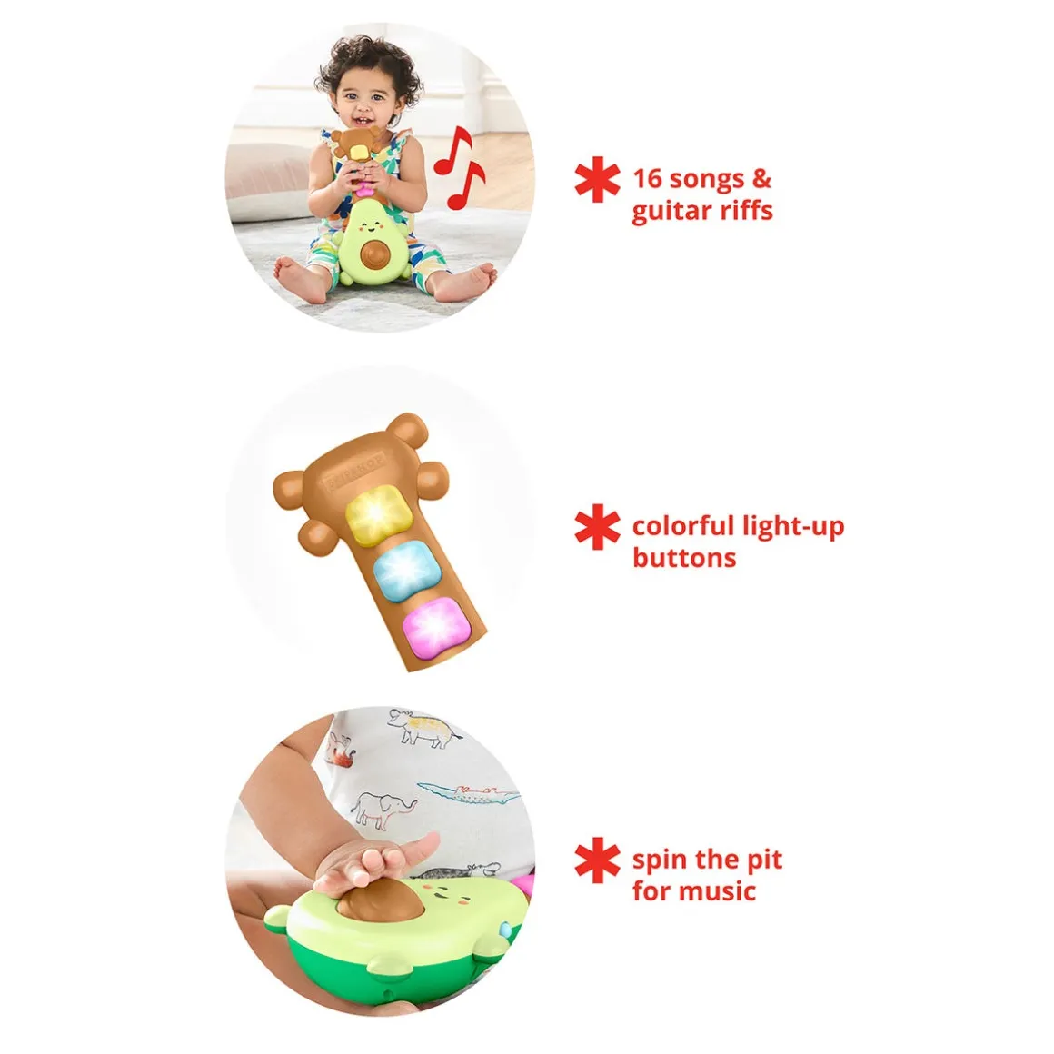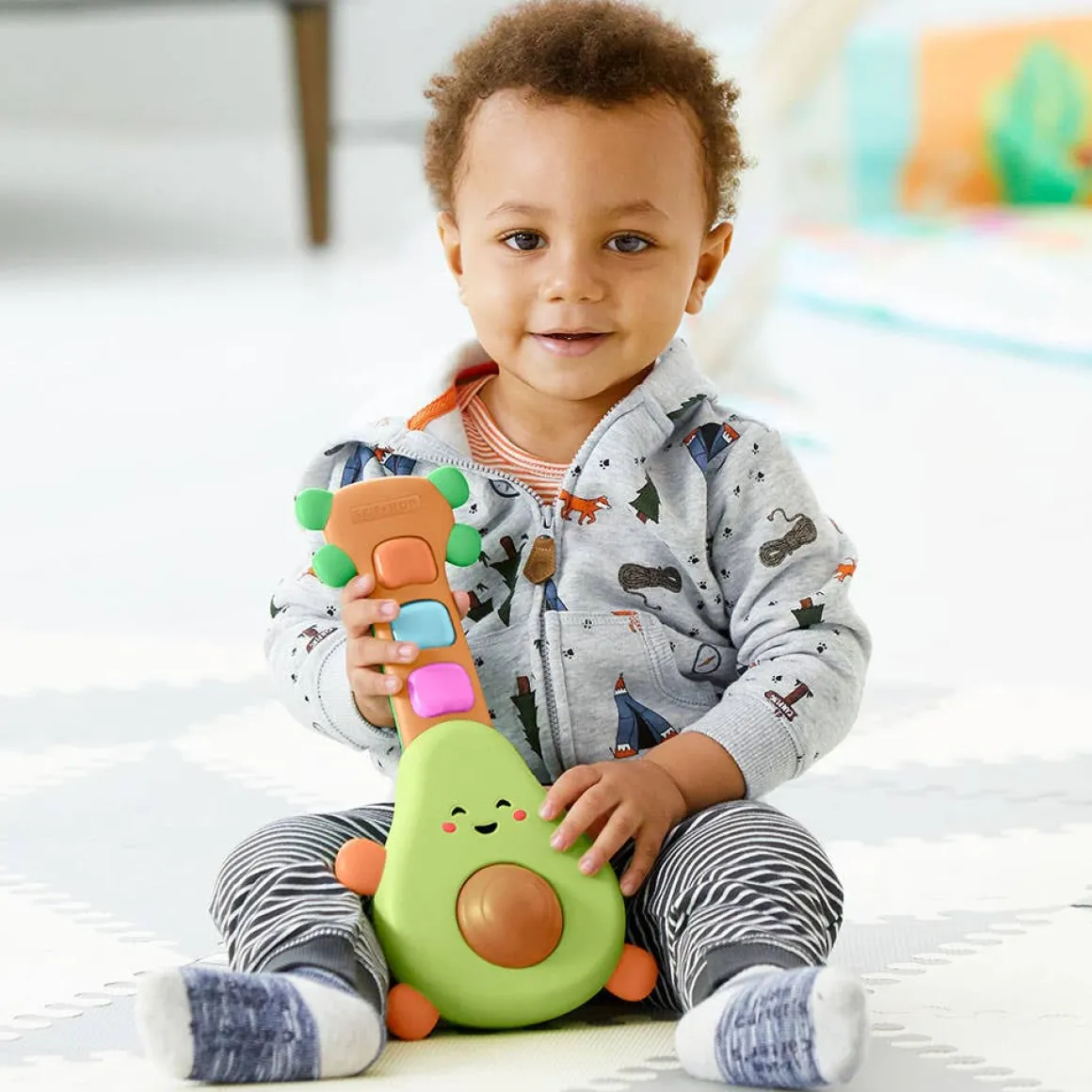 A little bit country and totally guac & roll! This adorable Skip Hop Farmstand Rock-A-Mole Guitar is an avocado guitar inspires mini musicians with strumming riffs, fun tunes and more! Easy for little hands to hold—just spin the avocado’s “pit” or press the light-up buttons and guac out!