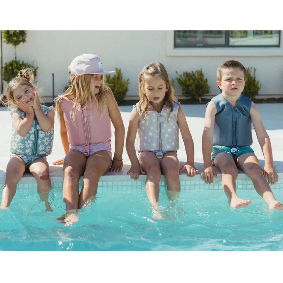 Unlike these Floaties, these focus the flotation around your childs core leaving their arms free for full range of motion. Children will experience a stable float, while relying on their own body movements to move around. They are not a life jacket, nor are they rated for use on a boat. These are a swim aid intending to help your children gain confidence and learn fundamentals of swimming while remaining safe in the water. We do suggest children have a level of comfort in the water prior to using these vests and they must be used under parental supervision.
