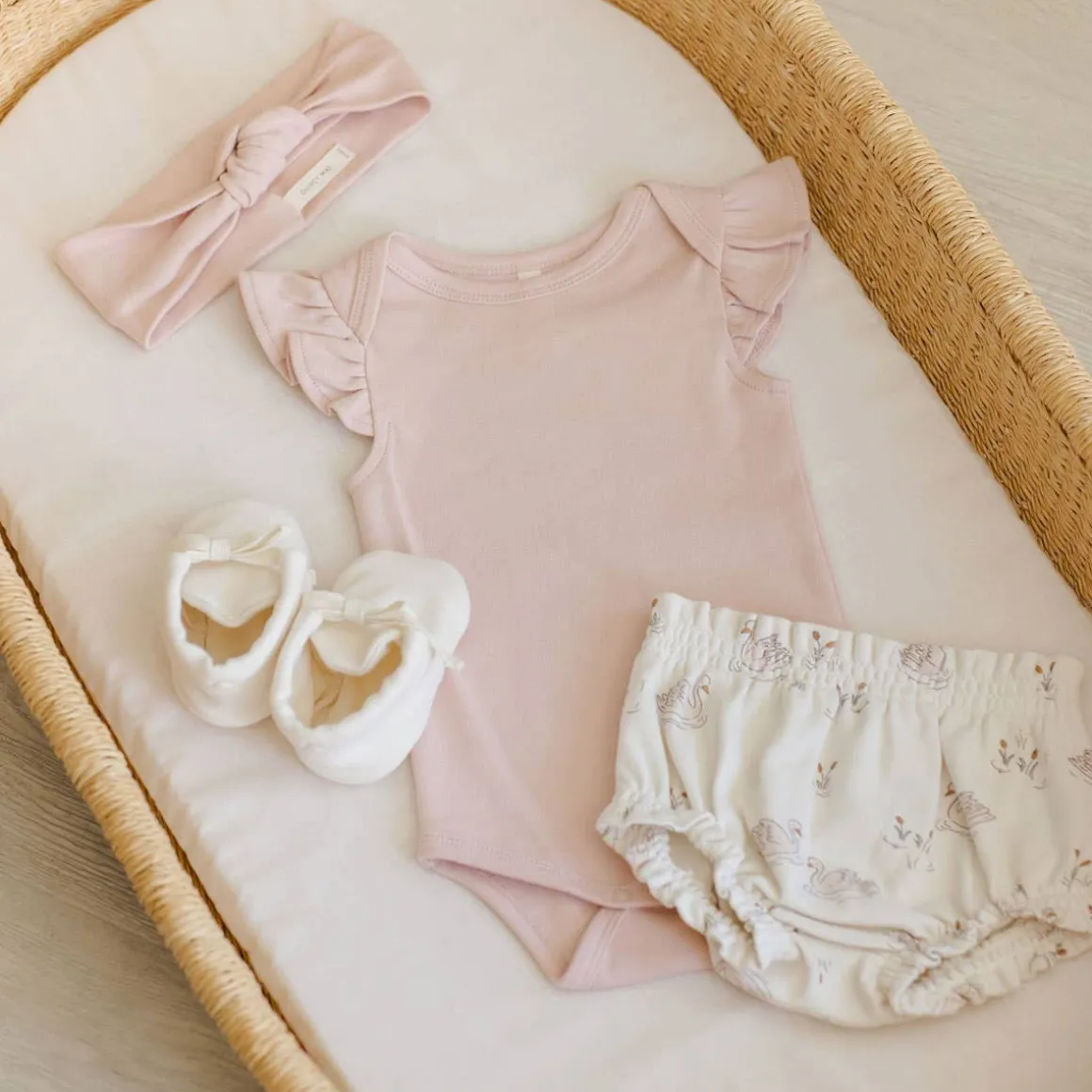 Add fun flair to your little gal’s style with Quincy Mae’s Flutter Sleeve Bodysuit.