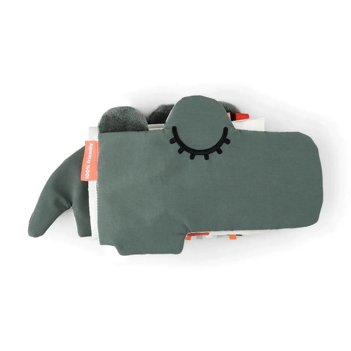 - The Croco fold-out soft book is filled with happy colours and elements that stimulates the senses of your child.