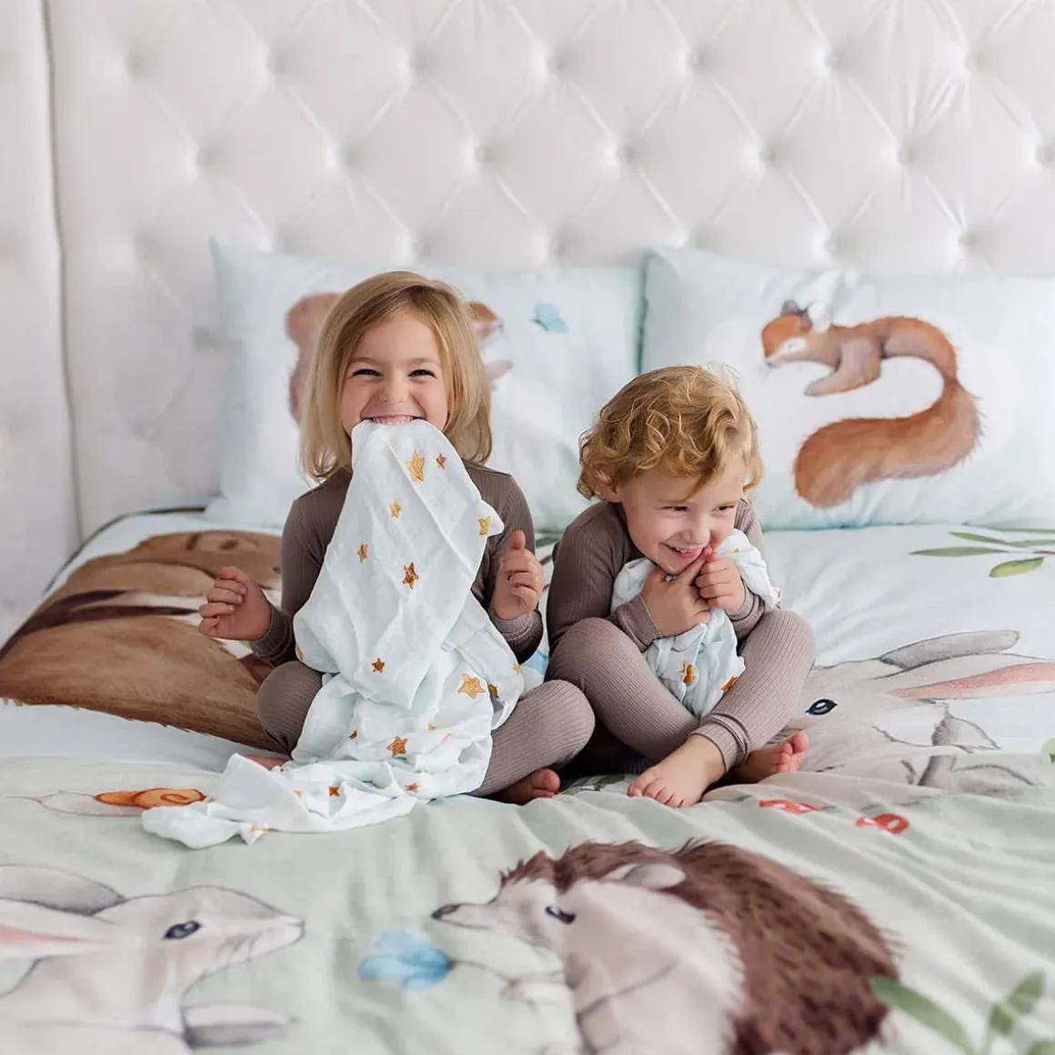 Illustrated by artist Laura Lhuillier, this playful design will be anyone’s favorite bedding!