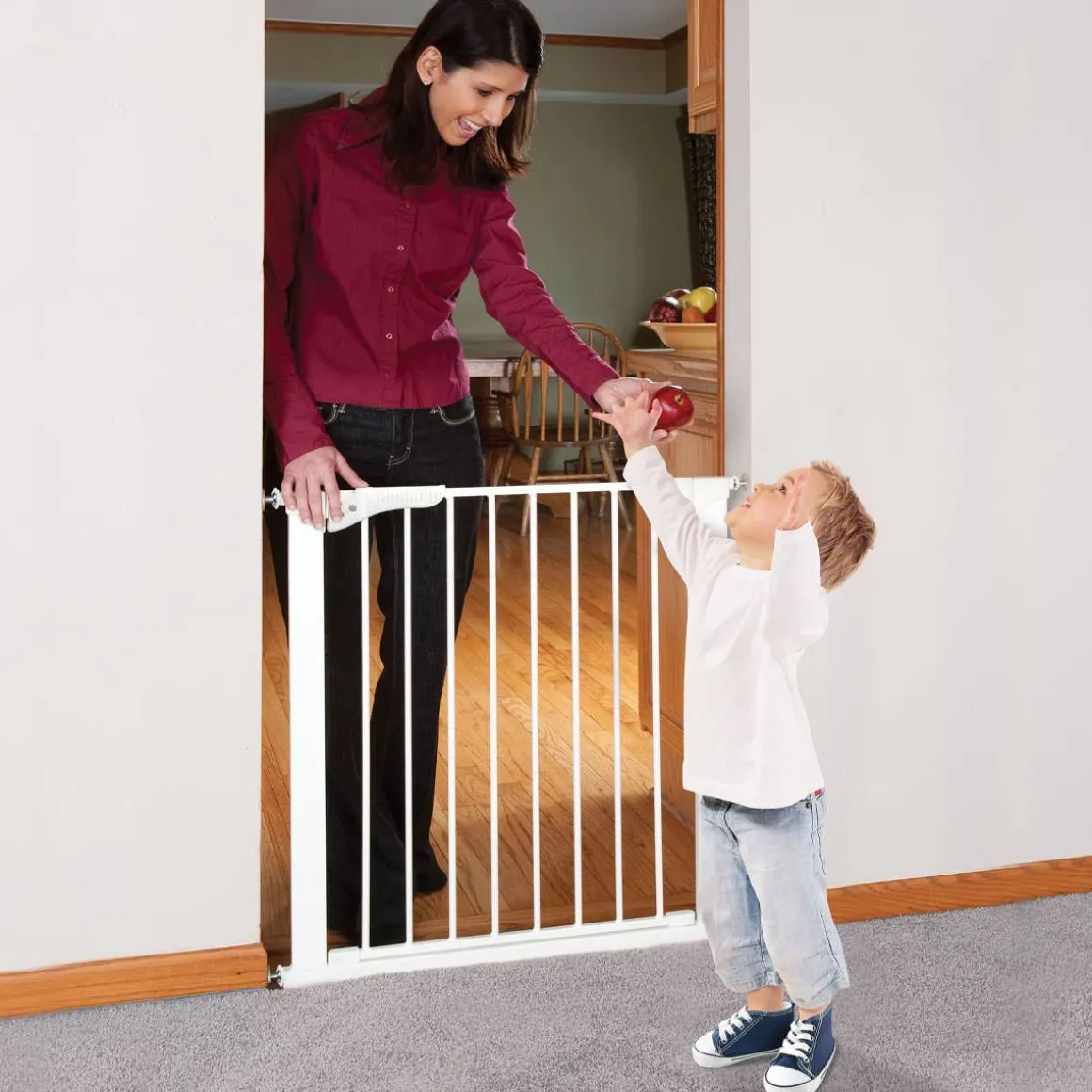 The KidCo® Gateway® is the perfect solution for heavily traveled doorways and room openings. As a pressure mount gate, it provides maximum safety for use in doorways and hallways when drilling into woodwork or drywall is not desirable or practical. The Gateway® incorporates exclusive Pressure- Plus Technology, which forces additional pressure on the door frame when the handle is locked after each use, providing extra stability and security. Optional extensions are available for larger openings up to 6 feet.