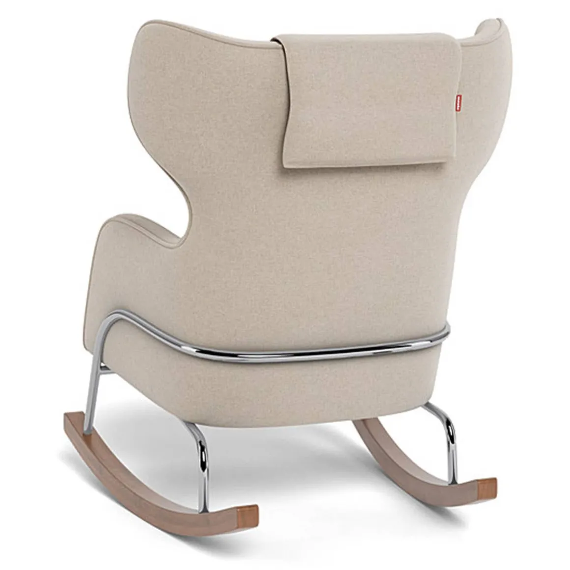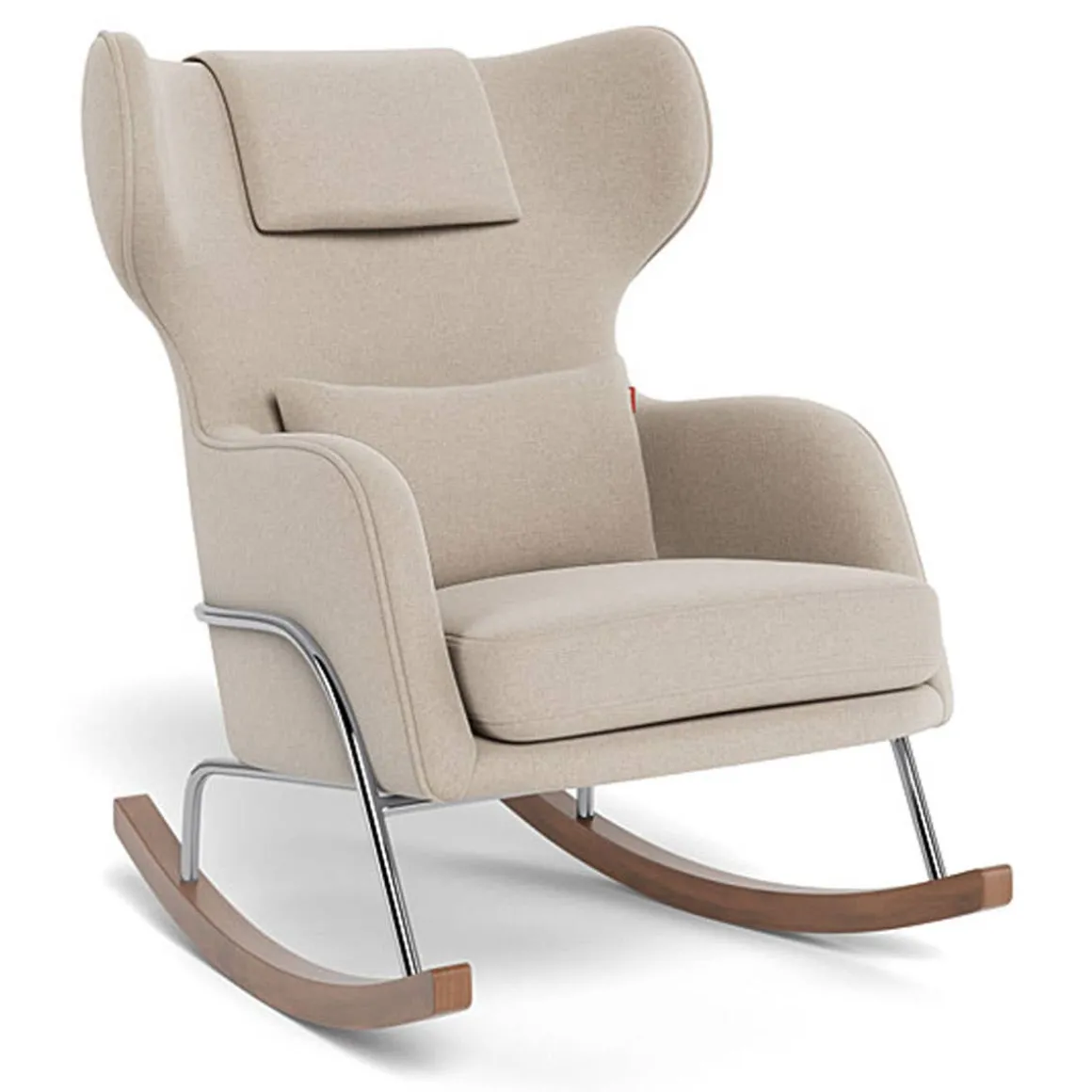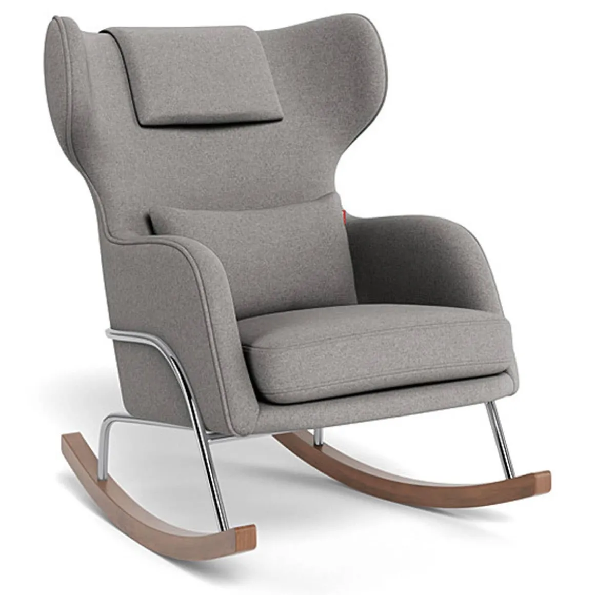 The Grand Jackson is a purposefully designed wingback with striking curves and smooth rocking comfort. Its combination of solid walnut wood, metal legs and sumptuous fabric choices, along with its stunning silhouette, make this rocker a sculptural statement piece for your home. Rest your head and Rock On in this unique wingback.