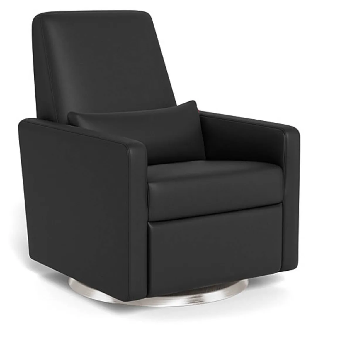 This Modern Glider Recliner is a stream-lined, comfortable and well-designed reclining glider without all the bulk. Enjoy the soothing glide, then recline and rest your feet on the pop-up foot rest. The Grano is so comfortable, you won’t want to get up!