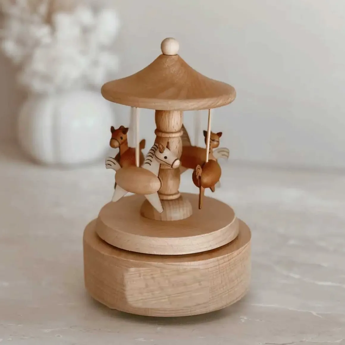 The beautiful heirloom musical carousels are the perfect keepsake for your little love. Made from beech wood and featuring a sweet tune when turned, These carousels are the perfect piece to treasure for years to come.