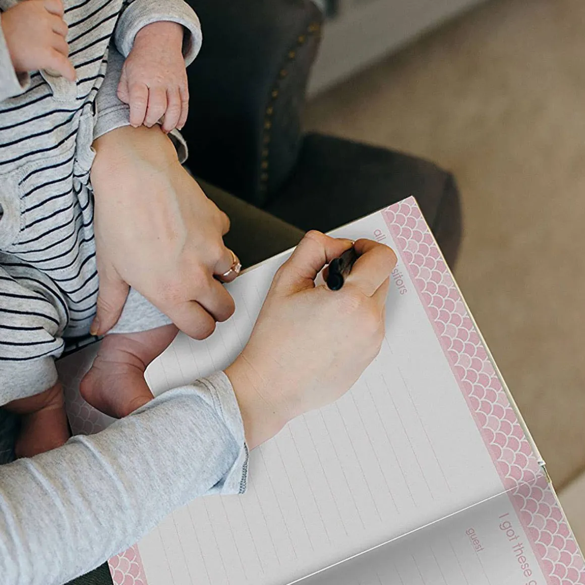 - Guided baby book to record baby’s most cherished memories