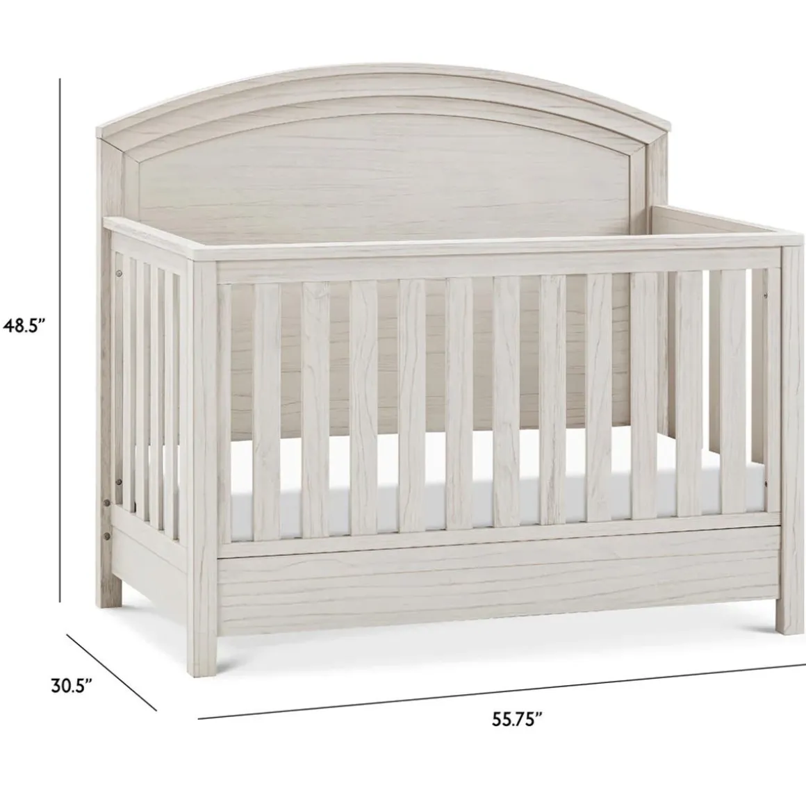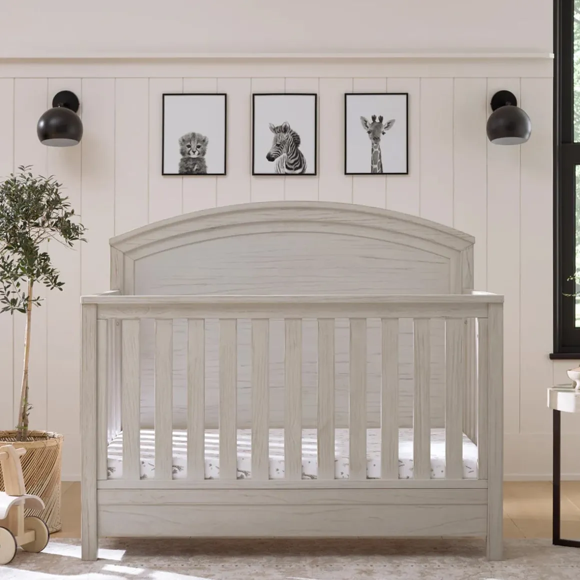 Lean into the modern farmhouse aesthetic with the Hemsted 4-in-1 Convertible Crib. Featuring a beautifully textured finish, clean silhouette, and traditional curved headboard, this crib will perfectly complement your home. Built to seamlessly transition from newborn to toddler, the crib has four different mattress heights and easily converts to a toddler bed, daybed and full-size bed. Complete your nursery with the Hemsted 6-Drawer Dresser.