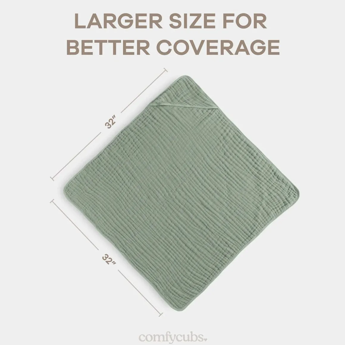 - Generous Size for Growing Babies: The Comfy Cubs hooded towel measures a Large 32 x 32 inches, ensuring excellent coverage from newborns to toddlers. Its larger size offers plenty of room for your baby to grow into, providing lasting comfort and warmth as they transition through each stage of their early years.