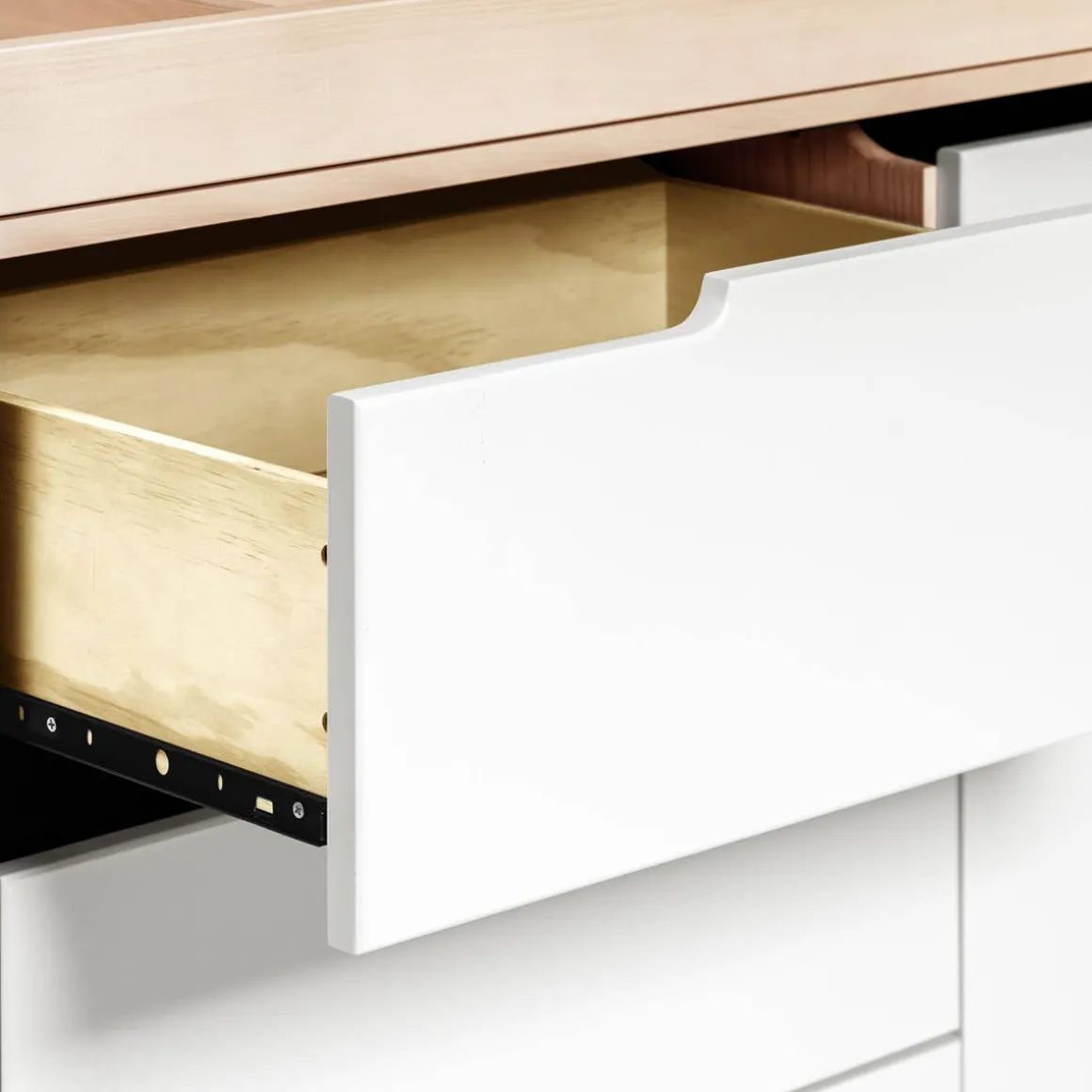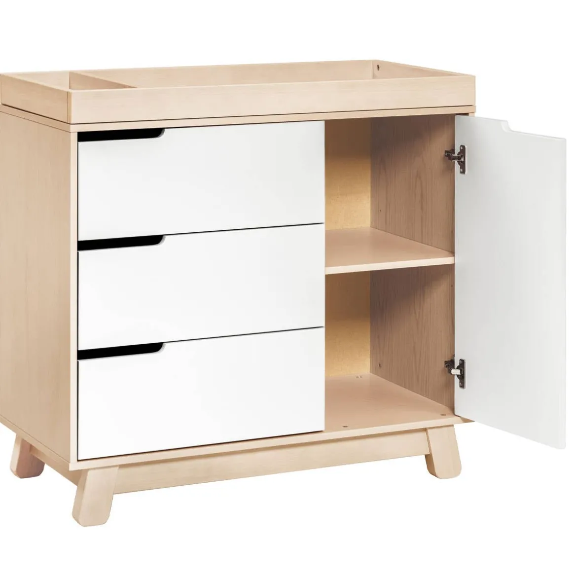 The Hudson 3-drawer Changer Dresser is a modern space-saving convenience! Combining an included changing table, 3-drawer dresser, and storage cabinet all in one versatile package. Truly built for baby, the storage cabinet includes an adjustable shelf which is perfect for keeping diapers and wipes handy. Additional details include smooth-glide drawers, hidden hardware, and an included anti-tip kit. Complement the best-selling Hudson 3-in-1 Convertible Crib for an essential modern nursery.