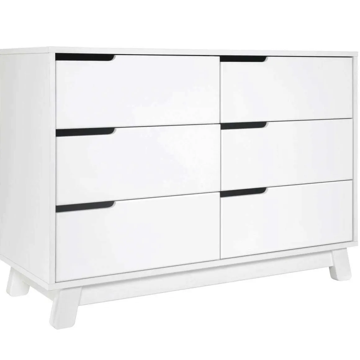 So many onesies, so little time… the babyletto Hudson 6-drawer Double Dresser is here to help! Designed with spacious smooth-glide drawers, hidden hardware, and an included anti-tip kit, this dresser arrives fully assembled, ready out of the box to keep your babe’s wardrobe neat and organized. The Hudson’s versatile design complements modern nurseries and pairs perfectly with the Hudson 3-in-1 Convertible Crib with matching turned out feet.