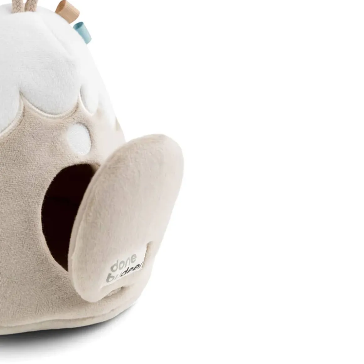 The Lalee hide & seek mountain will entertain toddlers while developing their concentration skills and hand-eye coordination. Little ones can feel the different textures, enjoy the sweet bells and discover the colourful tags.