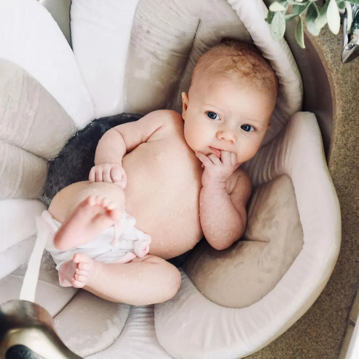 The Blooming Bath Lotus is the latest and greatest product from Blooming Baby, and incorporates improvements and features learned from years of testing and use. This bath promises to be the most comfortable and convenient bath ever! The original Blooming Bath is beloved by parents and babies around the world – the new Lotus proves to be even better. Why would anyone want to bathe their baby in a hard plastic tub when they could surround their little one in the cuddly softness of an adorable plush flower?